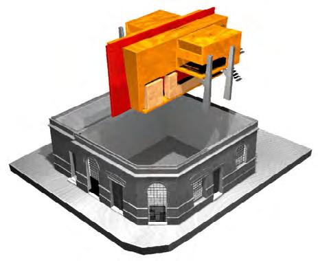 of the future. Unlike the coal mine structures, the prisons are not limited solely to the past; instead, they want to evolve and move forward into the uncertain. The specific choice of elements, such as worn pulleys and taut chains, seek to position the object at a temporal crossroads, where pre-modern structures are projected into the future and objects of the past seek redefinition in the present. Piranesi's imaginary prisons embrace their past condition intending to transform themselves into something more, something that transcends the limits of their own time and seeks to take root in a future yet to be discovered.