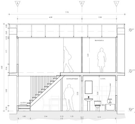 The use of prefabricated components permitted longer lengths and squarer standard lengths, in addition to pieces with monolithic geometries such as the staircase, making it possible to create spaces with dimensions and proportions typical of other construction systems such as reinforced concrete and steel.