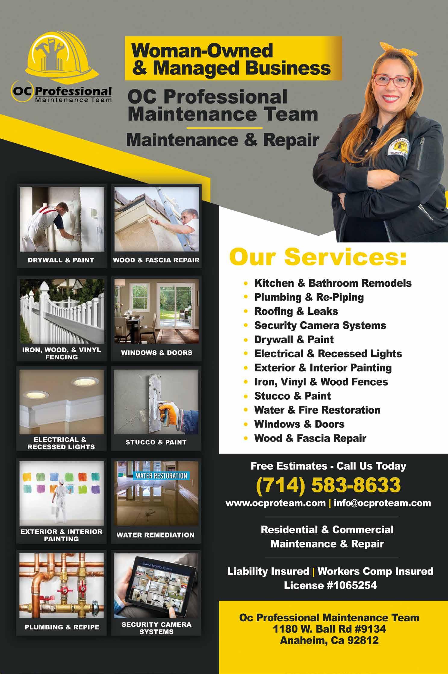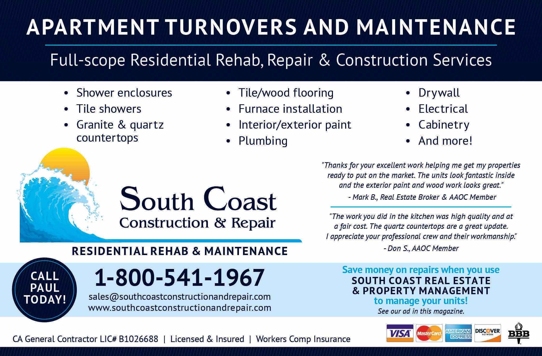 is not engaged in rendering legal, accounting or other professional service. If legal service or other expert assistance is required, the services of a competent person should be sought. Publisher disclaims any liability for published articles, typographical errors, production errors or the accuracy of information provided herein. While Orange County Apartment News makes efforts to ensure the accuracy of information provided herein, publication of advertisements does not constitute any endorsement or recommendation, expressed or implied, of the advertiser or any products or services offered. We reserve the right to reject any advertising or editorial copy.