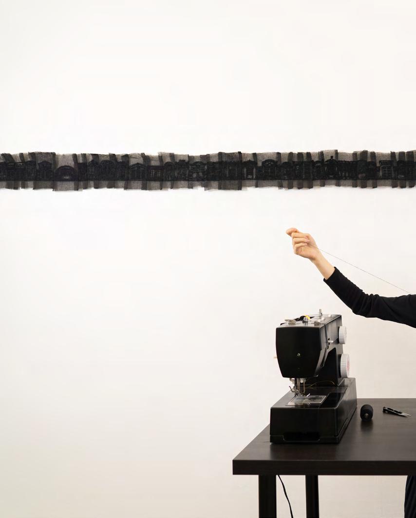 Sewing is an ancient practice, a traditional craft. Living in our growing industrial age where everything moves at such a fast pace, I use sewing as a method to negate this. What I seek to emphasise is the practice’s need for slowness and patience to create a link and balance between the past and present. As our environment is changing rapidly, many new buildings are being erected at a rapid pace and, simultaneously, many others are disappearing in the blink of an eye. The speed at which urban development is occurring has left many inhabitants feeling anxious and uneasy.