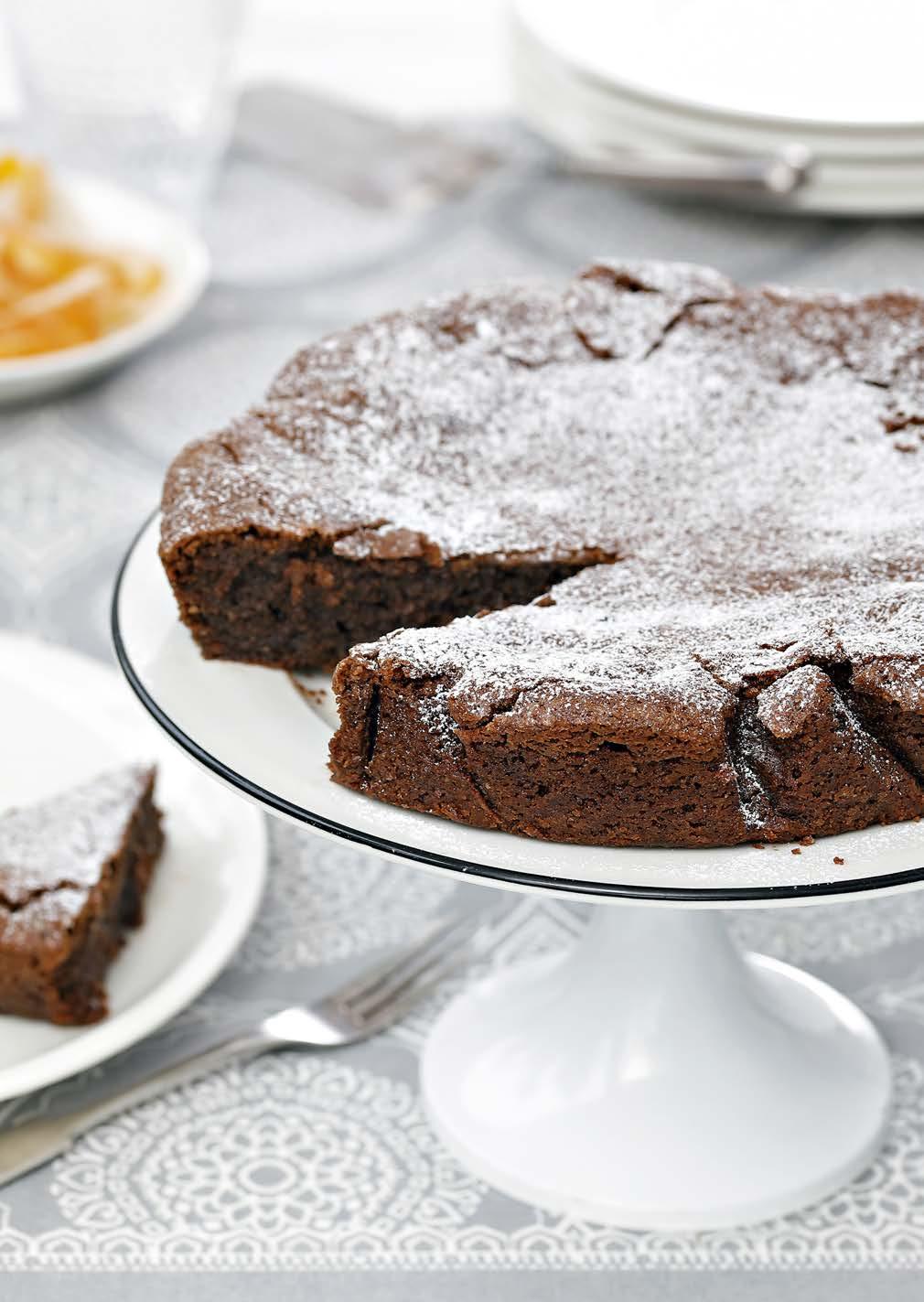▸ Enne serveerimist libista terava noaga mööda koogivormi siseäärt, et kook kergesti välja tuleks. Sõelu koogile veidi kakaopulbrit, kaunista tumedate, heledate või valgete šokolaadilaastudega.