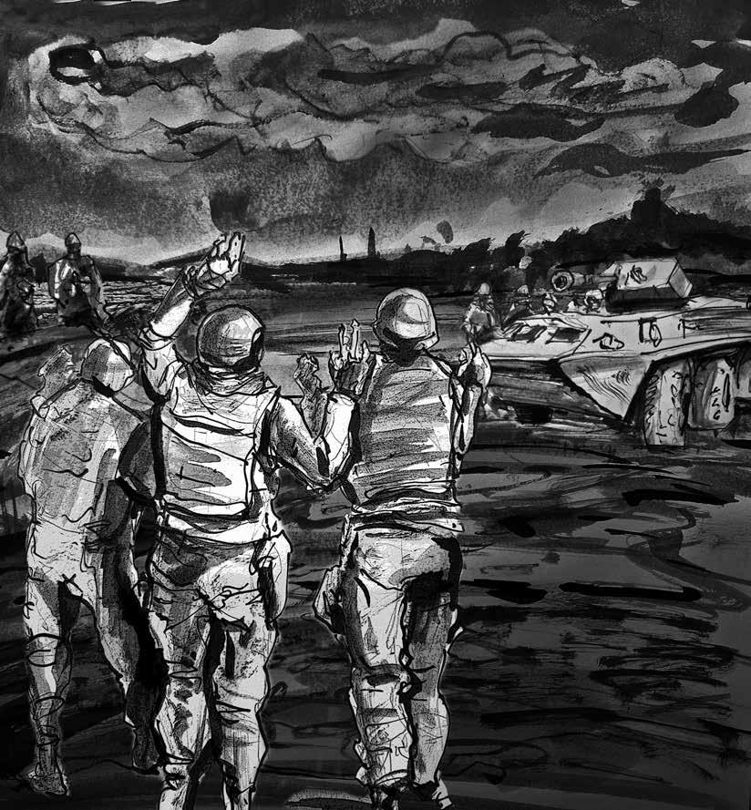 Sõitsime oma masinaga, meie ees sööstis varitsusest välja BTR-82A. Mõlemalt poolt piirasid meid sisse Vene Föderatsiooni sõjaväelased. Nägime nende tulepositsioone alles siis, kui olime lähemale sõitnud. Olime piiramisrõngas. Nad olid meist vasakul, paremal. Meile oli suunatud BTR-82A kolmekümnemillimeetrine toru. Kaalusin meie väljavaateid ja mõistsin, et meil puudub võimalus sellest olukorrast välja murda.