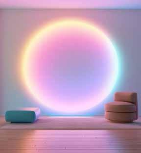 Digital real tones and colours immerse you in an AI reality, where chalky pastels blend with ethereal gradients for a futuristic table.