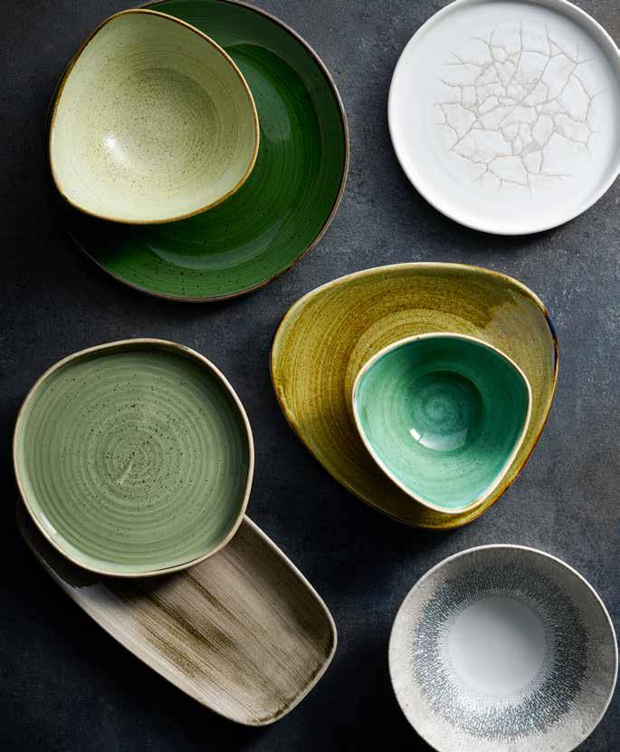 Circular thinking means we’re seeing more regenerative or salvaged materials, as well as natural colour palettes intended to be long-lasting and trans-seasonal. Fresh ingredients look great on tableware that emulates the natural world, and green is now a hugely popular tableware choice.