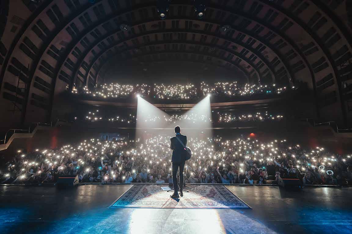 horas” de Los abuelos de la nada. El artista, en todos sus conciertos, habla sobre su devoción hacia la música argentina. Otro momento íntimo con su público fue cuando cantó a capella “A gritos de esperanza”. Todo el teatro en silencio conectando con su voz.