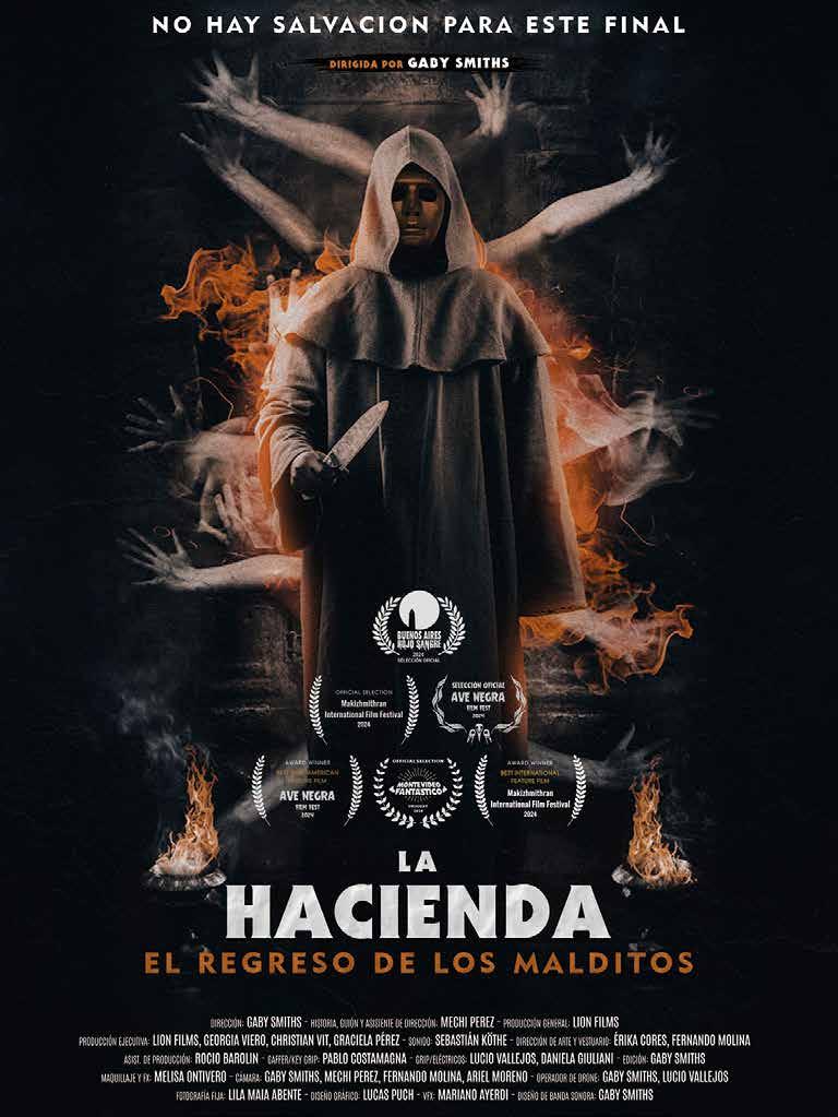 Dirigida por el argentino Gaby Smiths y con guión de Mechi Perez,»La Hacienda: el regreso de los malditos» se estrenó en noviembre en Buenos Aires en el marco del Festival Internacional Buenos Aires Rojo Sangre Edición 25.