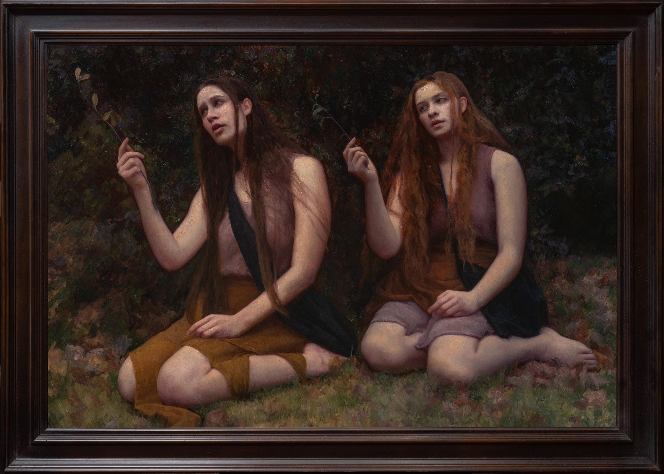 Divya Melaluca, born in Canberra, Australia, was raised in a very creative family with an upbringing full of hiking and other ventures that gave her a vast appreciation for nature. Always having an innate, mystical spirit and interest in the hidden and esoteric, it was in painting that she realized she could give life to her visions and become a storyteller. The beginning of this journey started for Melaluca at Odd Nedrum’s studio and farm in 2017. Working with Odd Nedrum over six impactful months helped Melaluca hone her craft. This time in Norway also lead to the next chapter of her painting career. There she met the painter Alex Venezia who became her mentor over the next few years in North Carolina where they worked alongside a community of artists known as East Oaks Studios.