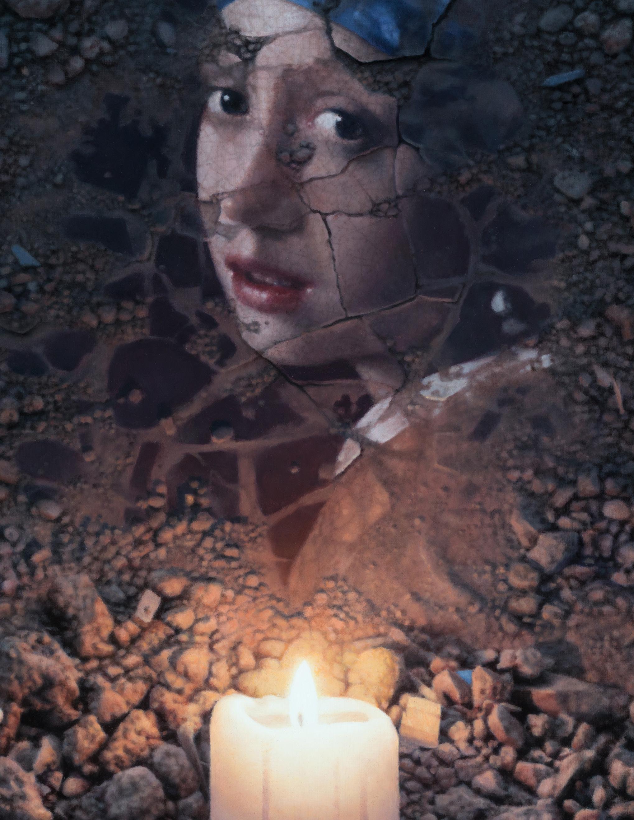Patrick Kramer was born in 1981 in Kaysville, Utah, the by nature, representational art was an outlet well suited Young University, receiving a BFA in 2008. Patrick is famous works along with elements of destruction. He or opposition, order versus chaos, variety versus unity, deconstructed masterpieces while making a piece for a has destroyed his fair share of artworks when By illustrating the destruction of masterful works of Kramer’s series communicates the inherit frustration of depictions of scraped imagery. Now the work has evolved shattering, and cracking. Images in mid-termination takes another layer of narrative Momento Mori, or the idea that death looms over everything theme in Kramer’s paintings as well. From Frida Kahlo Kramer’s decimation.