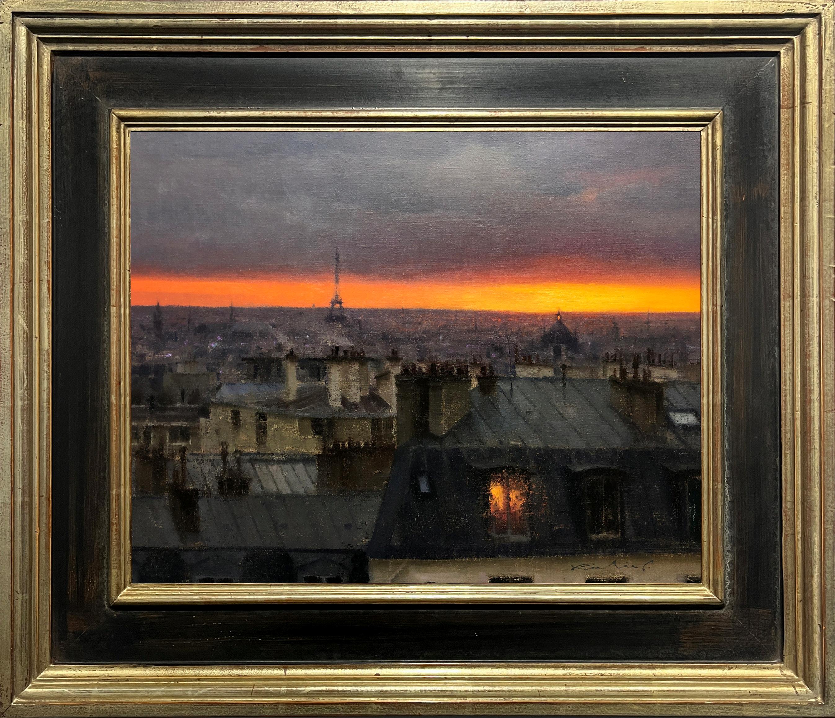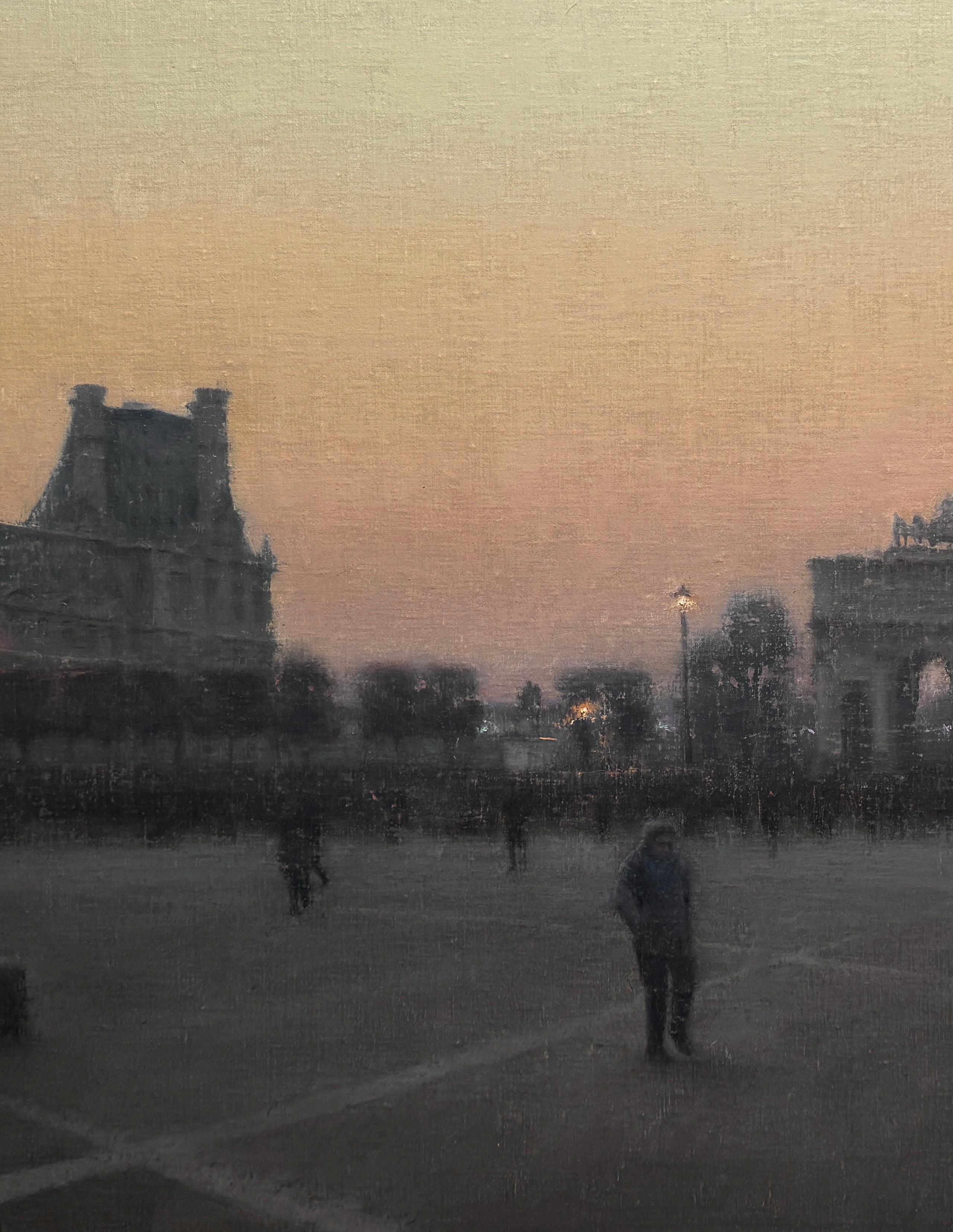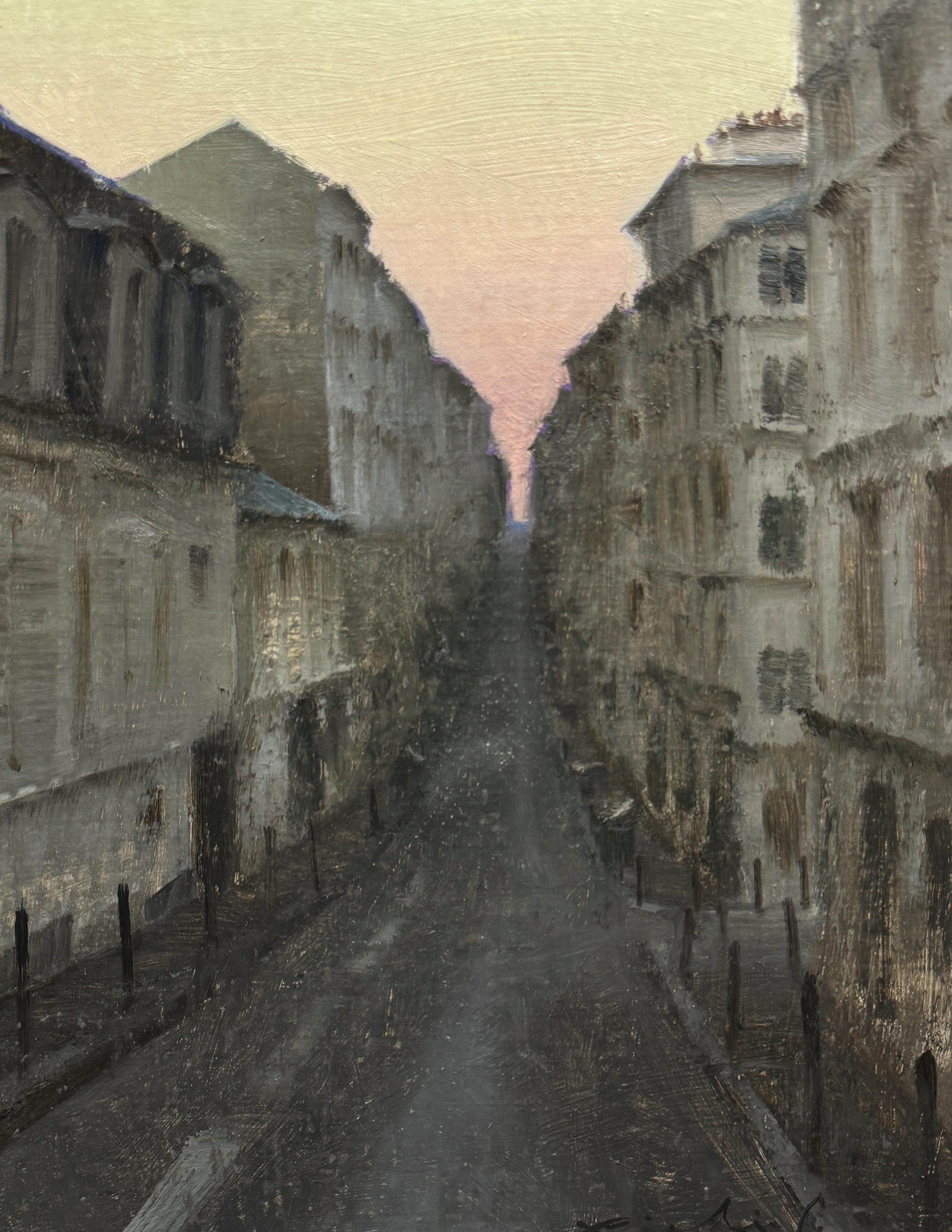 Carter’s love of Europe began in 2003. Enamored by its history, architecture, and multiculturalism, this fascination led him, like many artists of the past including John Singer Sargent and James McNeill Whistler, to study abroad. From 2009-2010, Carter lived and worked in Northern France at the Université de Picardie Jules Verne in Amiens and found his muse in France. Currently living and working in Montana, Carter relies on his plein air studies, memories, and sketches to create his paintings. This process results in a tonal aesthetic reminiscent of painter and writer Russell Chatham (1939-2019), another Montana native who has inspired Carter’s work.