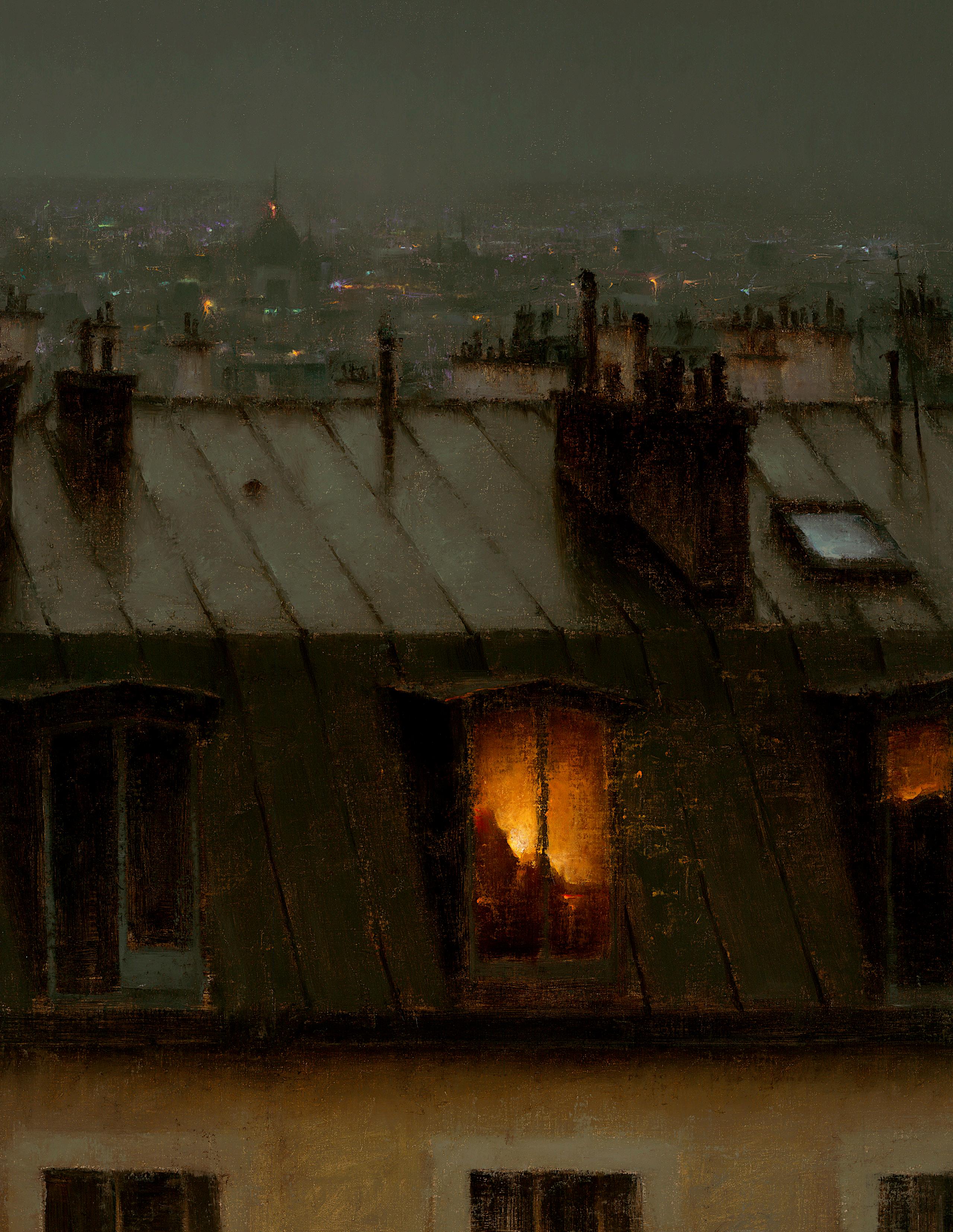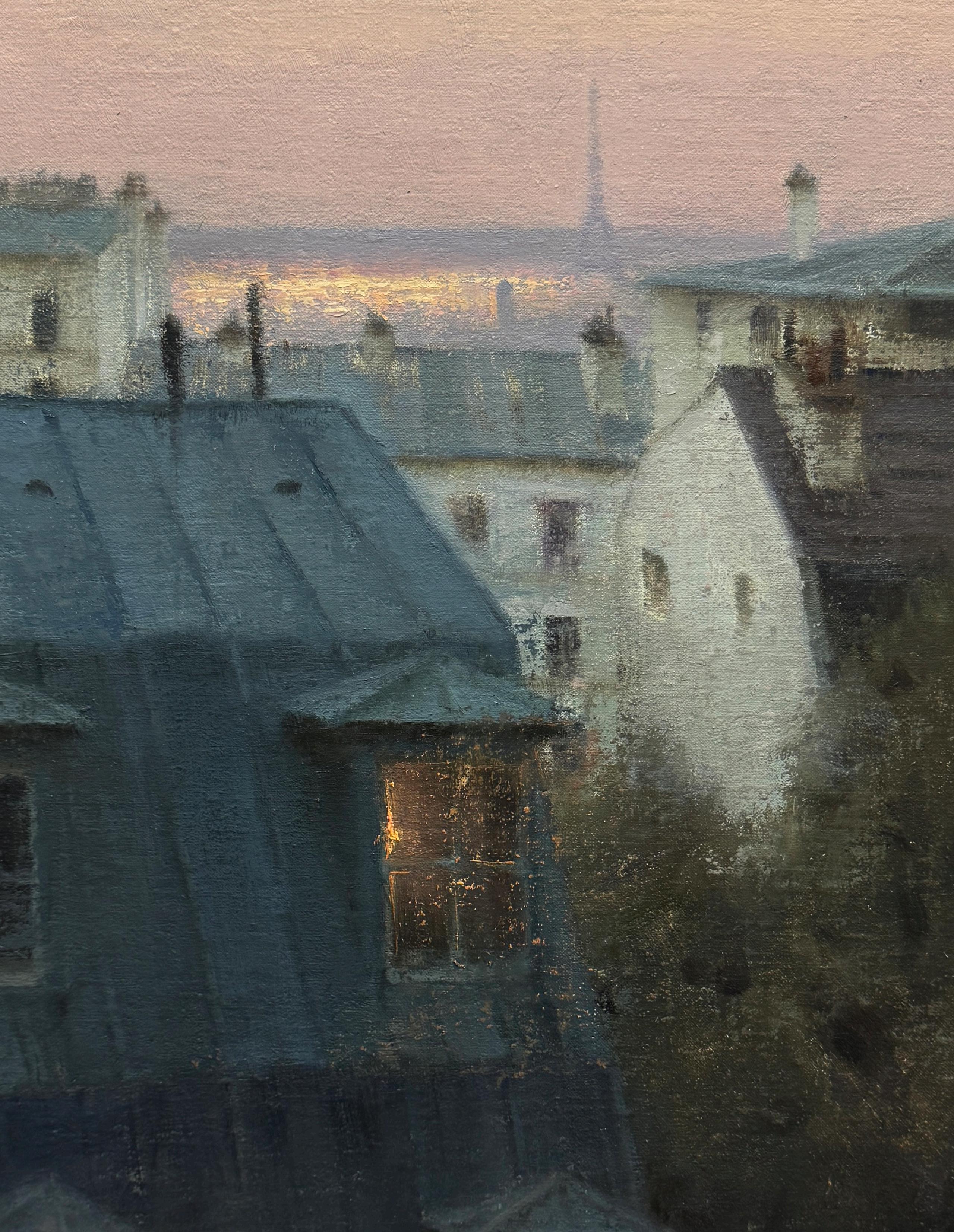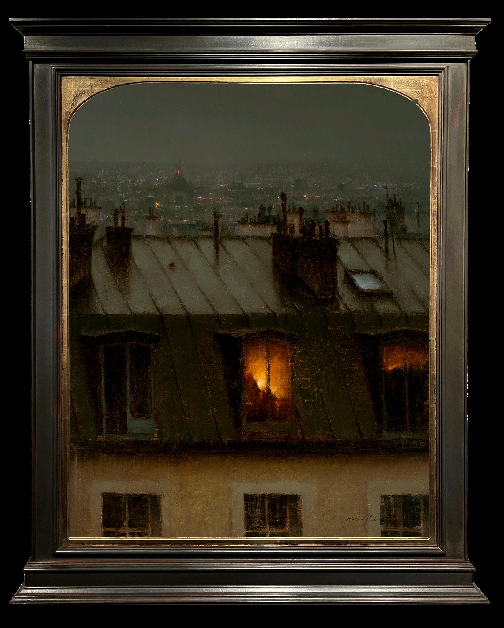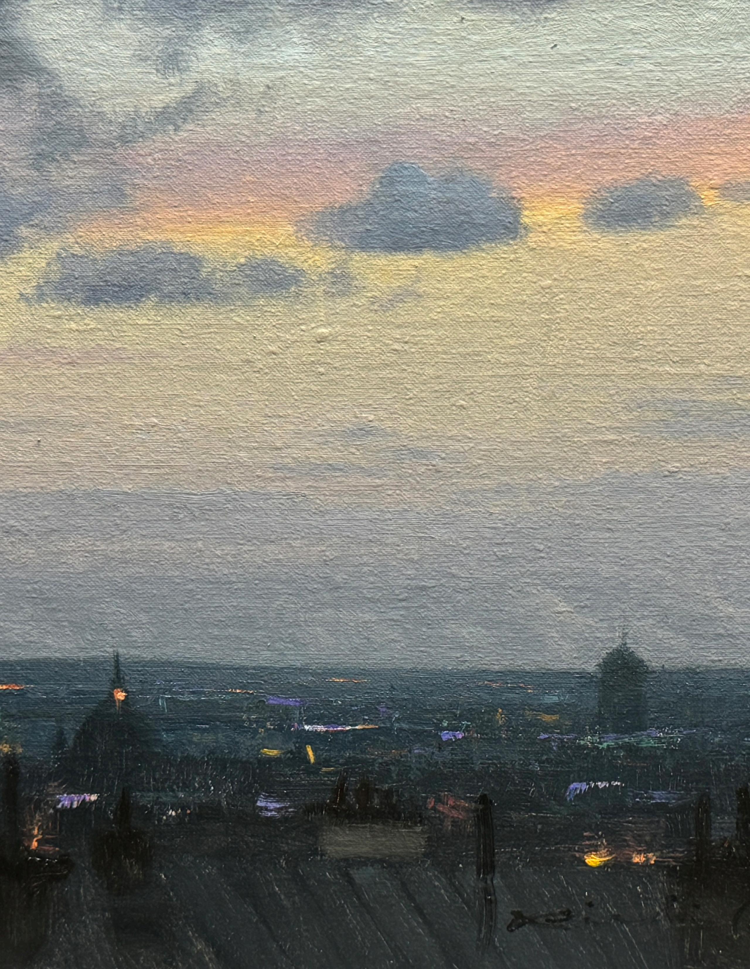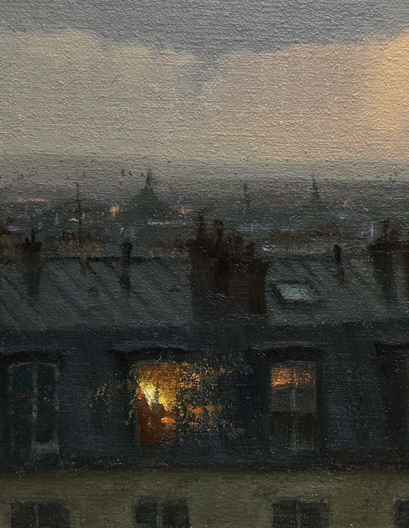 In this new body of work, each painting serves as a chapter in a larger narrative that Carter constructs through his repeated engagements with the city of Paris, particularly a Parisian vista located in Montmartre (XVIII Arrondissement). While the works may conjure themes of voyeurism, Carter asserts, “These paintings are very autobiographical; if arranged in a certain sequence, they would tell a very personal series of stories about memory, grief, and transformation. Furthermore, the exhibition is not just a presentation of landscapes but an exploration of universal experiences.”