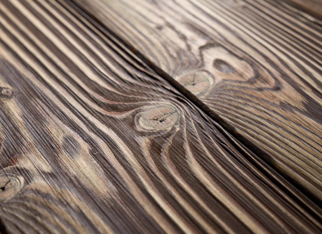 Inspirado en la tradición japonesa de carbonizar la madera, este producto retoma una técnica milenaria con un toque contemporáneo que, además de proteger la madera de hongos e insectos, aumenta su durabilidad y crea una superficie craquelada de gran impacto estético.