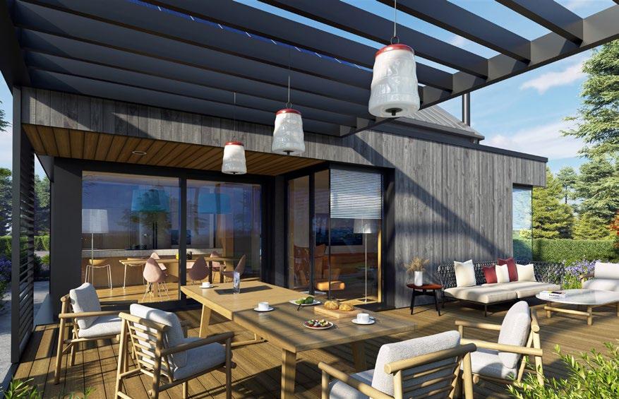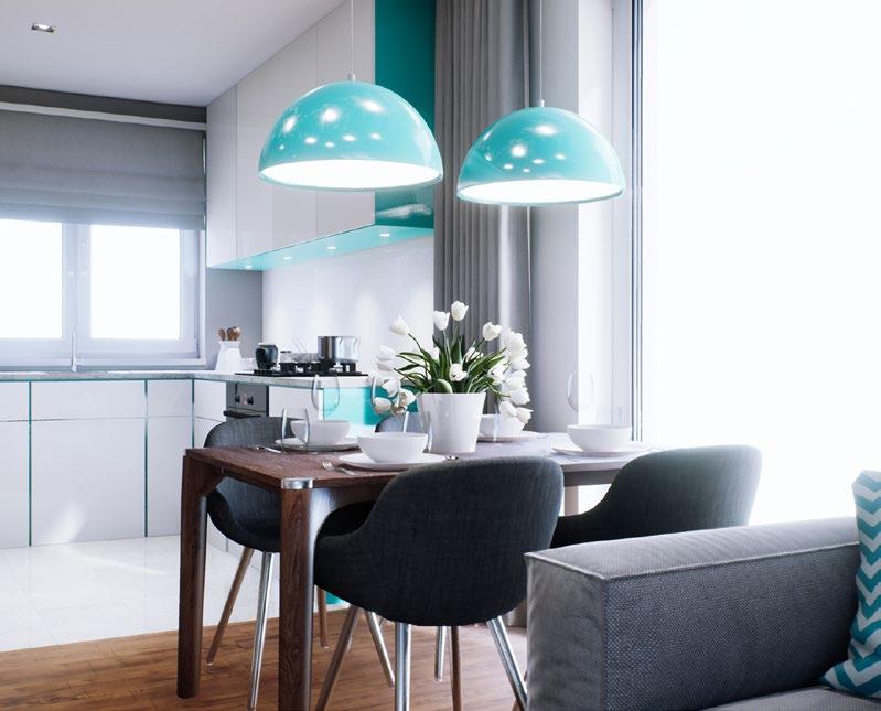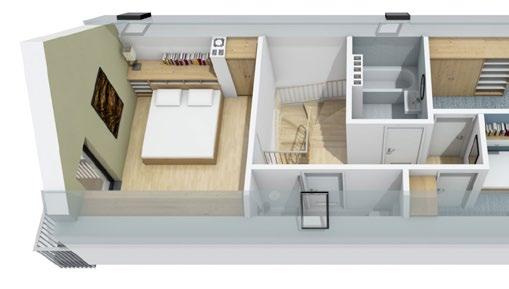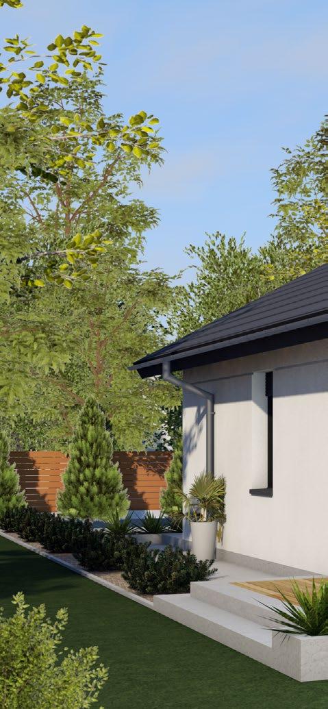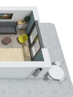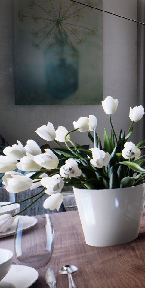 Wnętrza domu Mini 4 zostały zaprojektowane na potrzeby młodej rodziny, która bardzo lubi sp ę dzać wspólnie czas. Zale na stworzeniu przyjemnej, jasnej przestrzeni, w której ergonomia i funkcjonalność b ę dą równie ważne jak estetyka. Otwarta cz dzienna została zaaranżowana poł ączonymi kolekcjami z oferty marki VOX: Simple i Ribbon, które pię knie komponuj oraz jadalni. Obszerny stół z praktycznymi szufladami z kolekcji Nature marki VOX zachę ca do wspólnego biesiadowania. Dzięki niezale przesuwanym siedziskom sofy Slide stworzyliśmy komfortową przestrzeń do wypoczynku czy pracy, zyskując w razie potrzeby dodatkowe miejsce do spania. Tak powstała przestrze pozwala się zrelaksować, a dzię ki neutralnej kolorystyce mo za pomocą roślin, miękkich tkanin i dodatków zmienia z właścicielami. Wizualizacje zostały przygotowane w programie VOXBOX dostępnym na vox.pl
