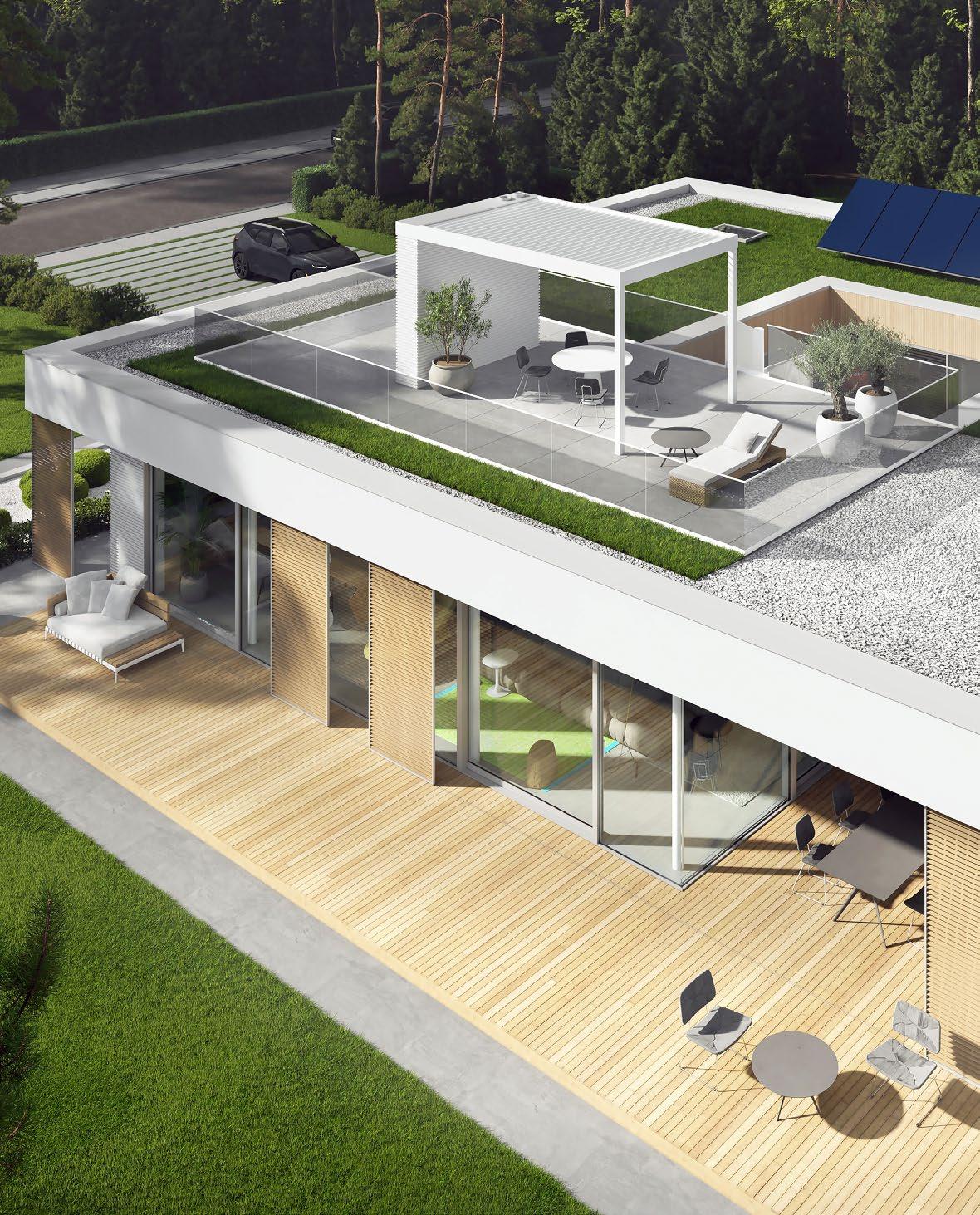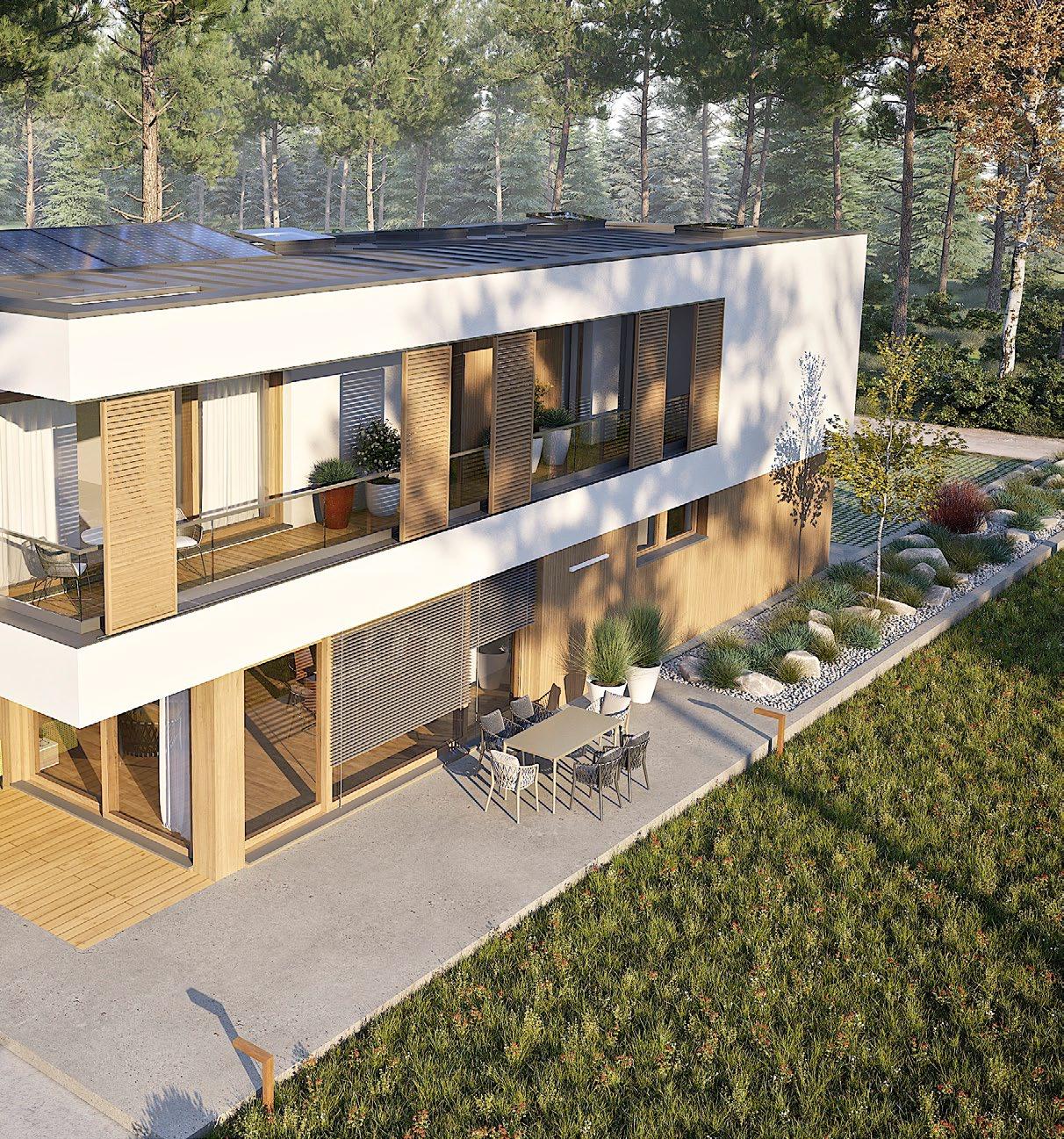 Projekty domów DOMY21 nowatorskie, energooszczędne, zgodne z WT2021. Harmonia z przyrodą, funkcjonalność. ogrzewanie podłogowe ogniwa forowoltaiczne powietrzna pompa ciepła wentylacja mechaniczna