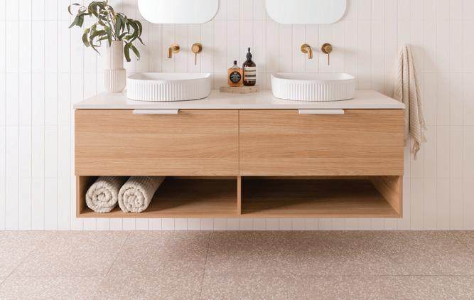 Choose from Cherry Pie and Caesarstone for your custom benchtop. See page 198. Choose from an Under-Counter, Inset, Semi-Inset or Above-Counter basin style. See page 119.