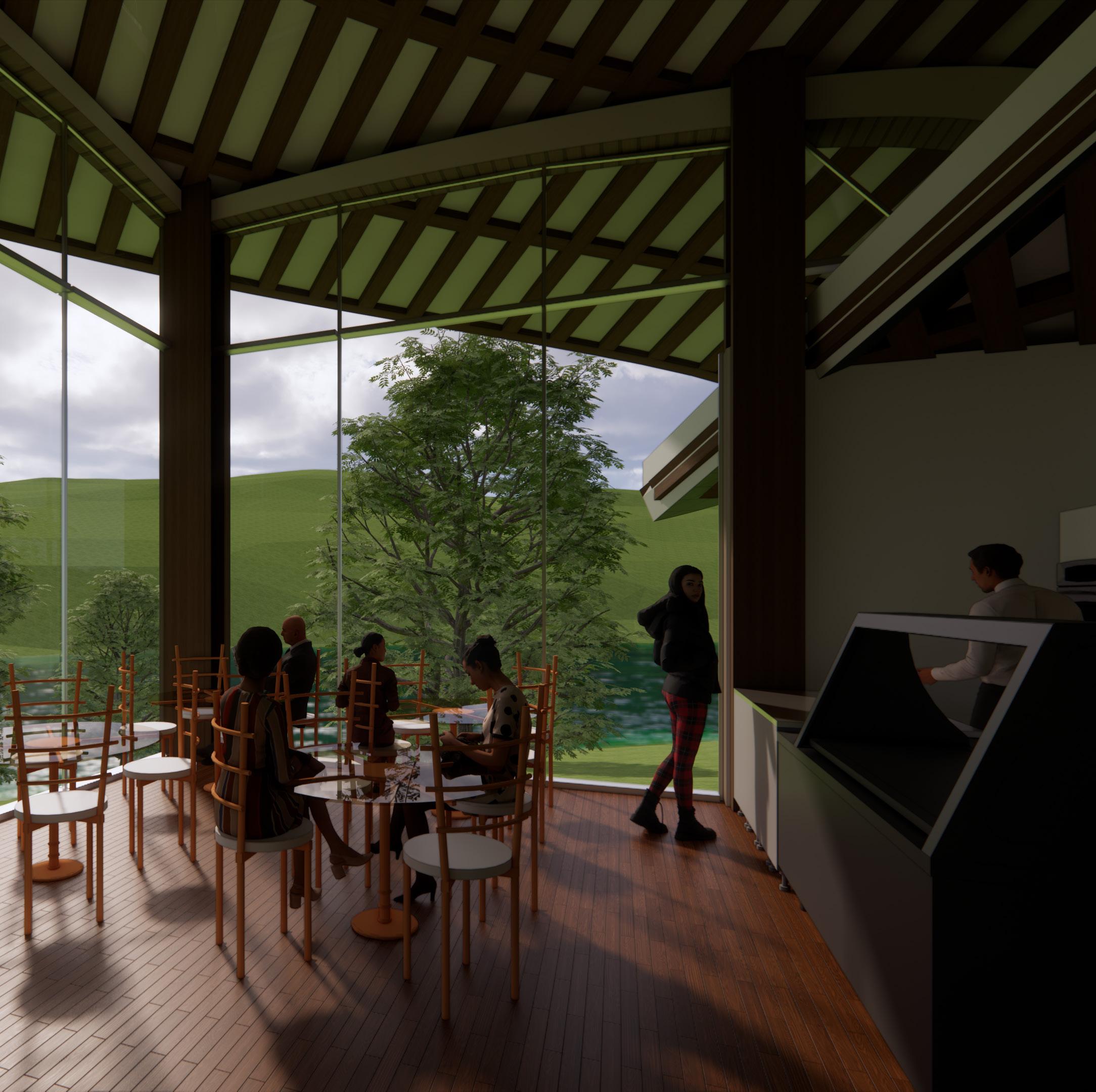 of the building is the office space, which is intended to facilitate the planning, designing, and retail of dioramas. This area is equipped with all necessary amenities such as desks, chairs, and computers required for carrying out these functions. The office space has been designed to be bright and airy, with large windows that allow natural light to come in, creating an inviting and comfortable workspace. The windows have been set high enough to maintain privacy while also allowing for interaction between the public and the viewer within.
