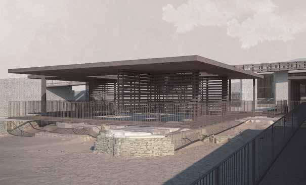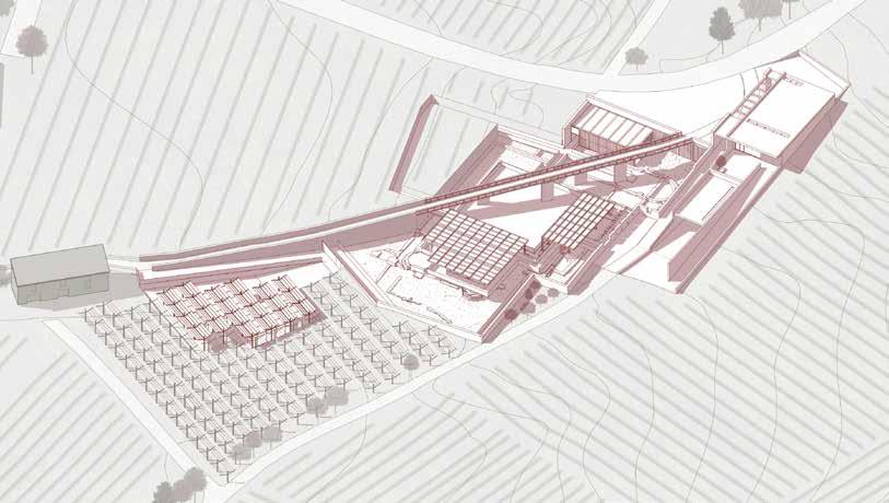 Lasciati alle spalle gli scavi, l’esperienza all’interno del parco archeologico termina con un approfondimento rivolto all’importante cultura vinicola dell’area, all’interno di un edificio a destinazione espositiva e commerciale. La copertura di questo edificio simula il paesaggio circostante dei vigneti, rimarcando in maniera simbolica un elemento simbolo imprescindibile della Valpolicella. •