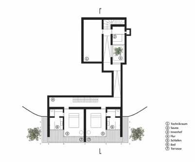 05-06. Centro di accoglienza per rifugiati a Conflans-sainteHonorine. Progetto: Atelier d’Architecture Marie Schweitzer. Relazione planimetrica tra il volume esistente e l’ampliamento ex novo a sud e render di progetto.