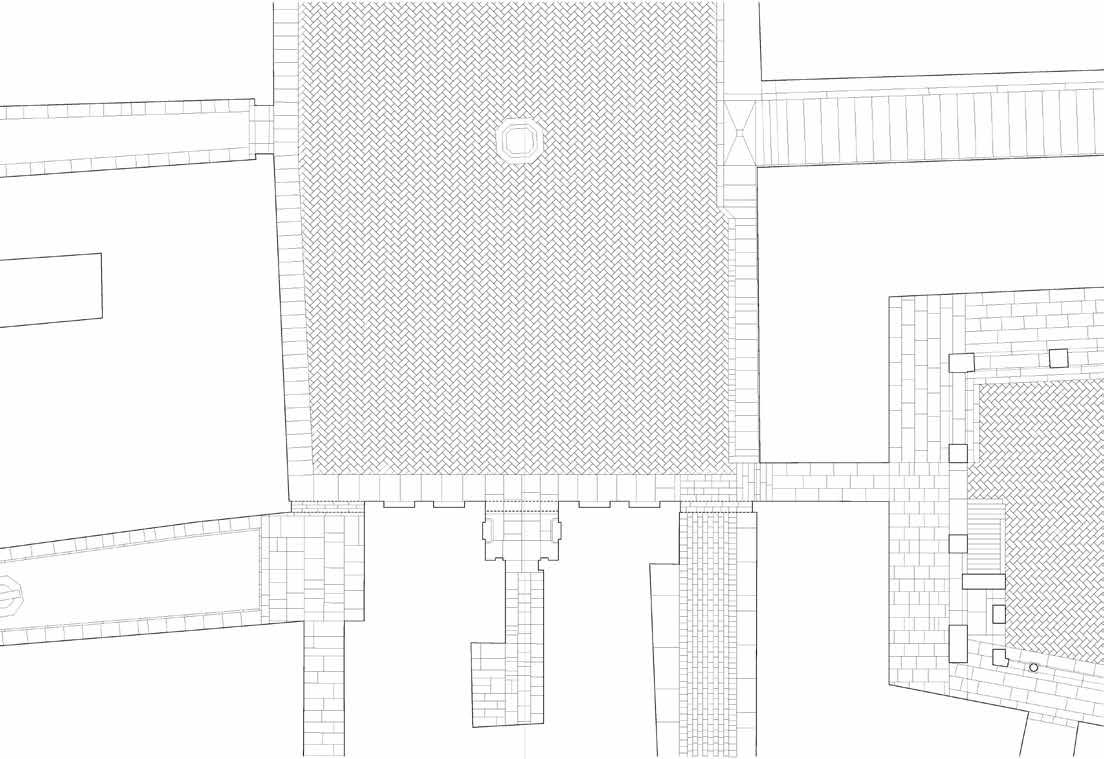 Si dovrebbe ora suggerire il passaggio di una soglia: ciò che connota un castello è l’accesso controllato attraverso una porta, elemento del tutto mancante a San Giorgio. Naturalmente non si vuole proporre la ricostruzione anacronistica di archi in pietra, ma piuttosto di suggerire il passaggio da un esterno a un interno, forse indicandolo sulla pavimentazione, in corrispondenza degli accessi all’abitato storico, con l’utilizzo di sottili lastre in calcare locale su cui incidere la dicitura “Porta alle Torri” o “Porta ai prati” o “Porta del bosco” o ancora “Porta Sant’Ambrogio” e “Porta Mazzurega” e portare la pavimentazione in pietra con cui si è già decorata parte dell’abitato fino a questi confini e non oltre. Tale espediente favorirebbe la lettura di un intra muros distinto dall’esterno. Un ridisegno del cimitero napoleonico potrebbe risultare in una pacifica convivenza tra il sito archeologico della collinetta settentrionale “delle due torri” con le tombe dei locali: non sarebbe infatti impensabile camminare tra le lapidi che ricordano i defunti mentre si osservano i basamenti delle torri che gli scavi archeologici hanno riportato alla luce.