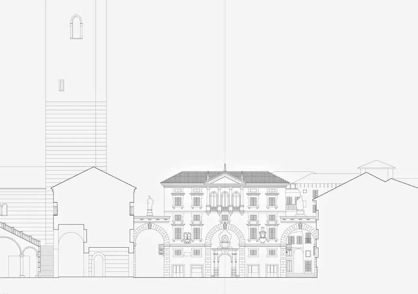 zione dell’abitato come “borgo” rendono illeggibile la storia del centro abitato. La suggestione è quella di un museo diffuso ed aperto, in continuità con il già presente museo della pieve, che favorisca la lettura delle fasi storiche che hanno caratterizzato l’antropizzazione dell’area dalle origini a oggi. Si dovrebbe forse rivedere anche l’odonomastica attuale che ha cancellato gran parte dei riferimenti storici: la Strada Garibaldi dovrebbe ritrovare il nome di Strada Sotto ai Prati, la Via della Torre tornerebbe Via delle Torazzine, riferendosi allo stato di rovina delle fortificazioni settentrionali, la Via Panoramica, nuovo accesso occidentale, potrebbe trovare nuovo nome tra le seguenti proposte: Via delle Muraglie, Via Porta Caransàn, Via al Vajo o alla Fontana. Si rinunci infine in modo sistematico alla denominazione di “borgo” per ritrovare quella di “castello”.