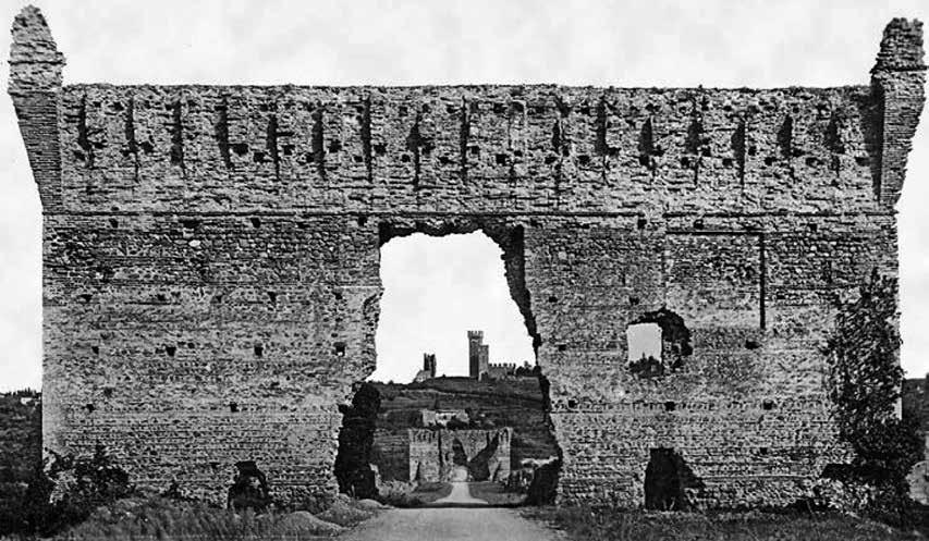 siderato alla stregua dei centri più bassi, di cui pure un tempo era a capo. Cadendo in disuso, si intuisce come le porzioni di mura del castello siano state smantellate in quanto pericolanti o per recuperarne materiale edilizio, considerando anche la testimonianza del 1721 nella quale l’arciprete di San Giorgio richiede la demolizione di “certe muraglie dirocate” per rendere più decorosa la piazza e riutilizzare le pietre nel consolidamento delle strutture murarie del tempio14 .