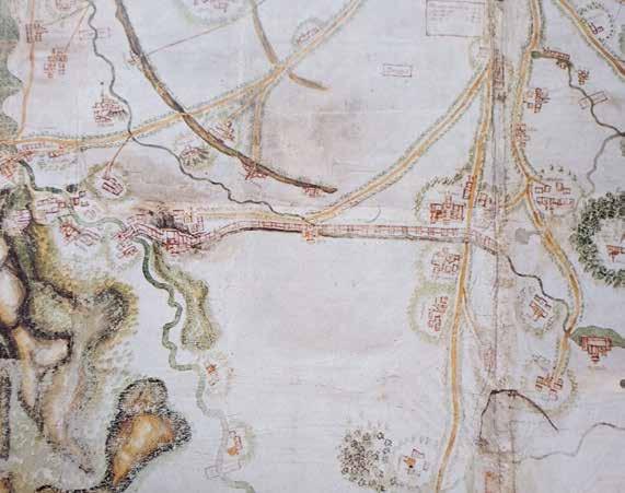 Ora, l’insediamento storico era delimitato a oriente da fratte incolte, a occidente dalla cengia naturale sotto la quale correva la via “sotto ai prati”; il lato meridionale segue a oggi un andamento semicircolare15 mentre quello settentrionale era difeso dalla collinetta fortificata con due torri, dove trovasi il cimitero. Al castello, stando alle ipotesi di Andrea Brugnoli, si accedeva attraverso tre probabili porte: una a meridione, per chi proveniva da valle; la seconda a settentrione che permetteva l’accesso alla via comunis per quam itur ad Silvam16 e alla via della Torazzina per Mazzurega; un terzo accesso si trovava a occidente per collegare la via della Fontana tramite la strada sotto ai prati17. All’interno delle mura potevamo trovare la pieve, una chiesa castrense18, il palatium episcopi annesso a questa e i porticalia usati dai vicini per i placiti. Ora, per lo sviluppo dell’abitato intra muros, la cartografia storica sette e ottocentesca ci mostra le abitazioni suddivise in due nuclei distinti: uno a nord della pieve e l’altro all’estremità meridionale, quindi tutte le costruzioni che oggi occupano uno spazio che dalle origini del castrum era rimasto vuoto sono da considerarsi posteriori al 181719
