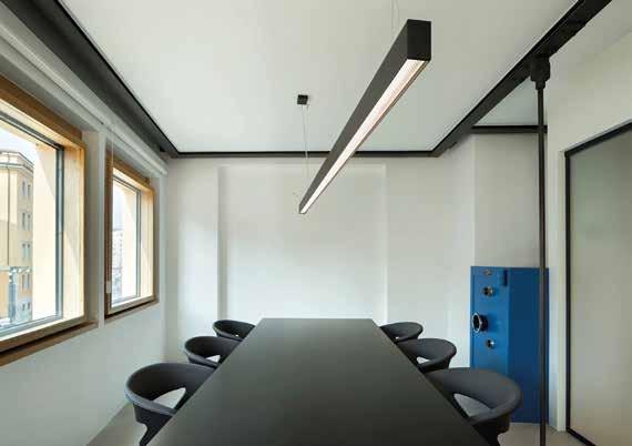 A questi retaggi del passato i progettisti danno un tocco di leggerezza e contemporaneità attraverso i colori scuri dei soffitti a vista, in contrasto con l’elemento vetrato. Le passerelle reggicavo metalliche, sottostanti il grigliato a soffitto, mostrano senza alcuna vergogna tutta la rete impiantistica necessaria alla nuova funzionalità, diventando motivo di continuità tra gli ambienti. Il pavimento in micro-cemento conferisce continuità, alleggerendo un ambiente di per sé carico di dettagli. La sala riunioni, luminosissima, man-