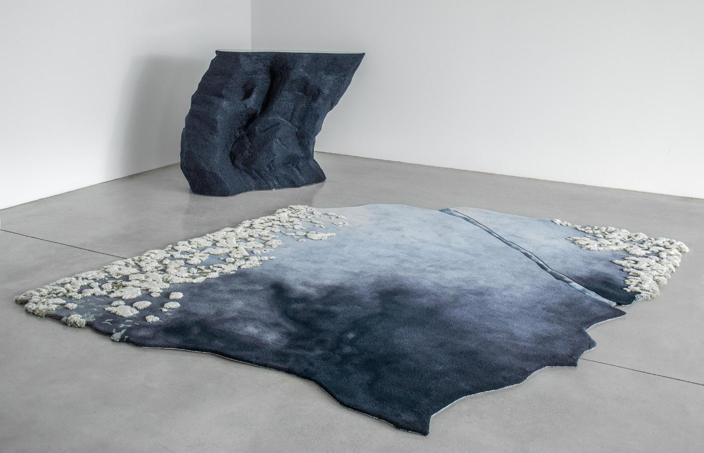 Carnegie on nearly every facet of American life via a series of obsessive flowcharts by Mishima connecting Carnegie’s philanthropies to universities, banks, foundations, and other similarly society-shaping institutions. In the center of the room, a game derived from Monopoly turns these connections into clever entertainment, and around the perimeter, Lee’s pieces of meticulously needle-felted furniture in nearneon shades of lavender, lime green, and hot pink draw a stark formal contrast with the room’s deep, rich shades of wood, producing an unsettling effect befitting the room’s themes.