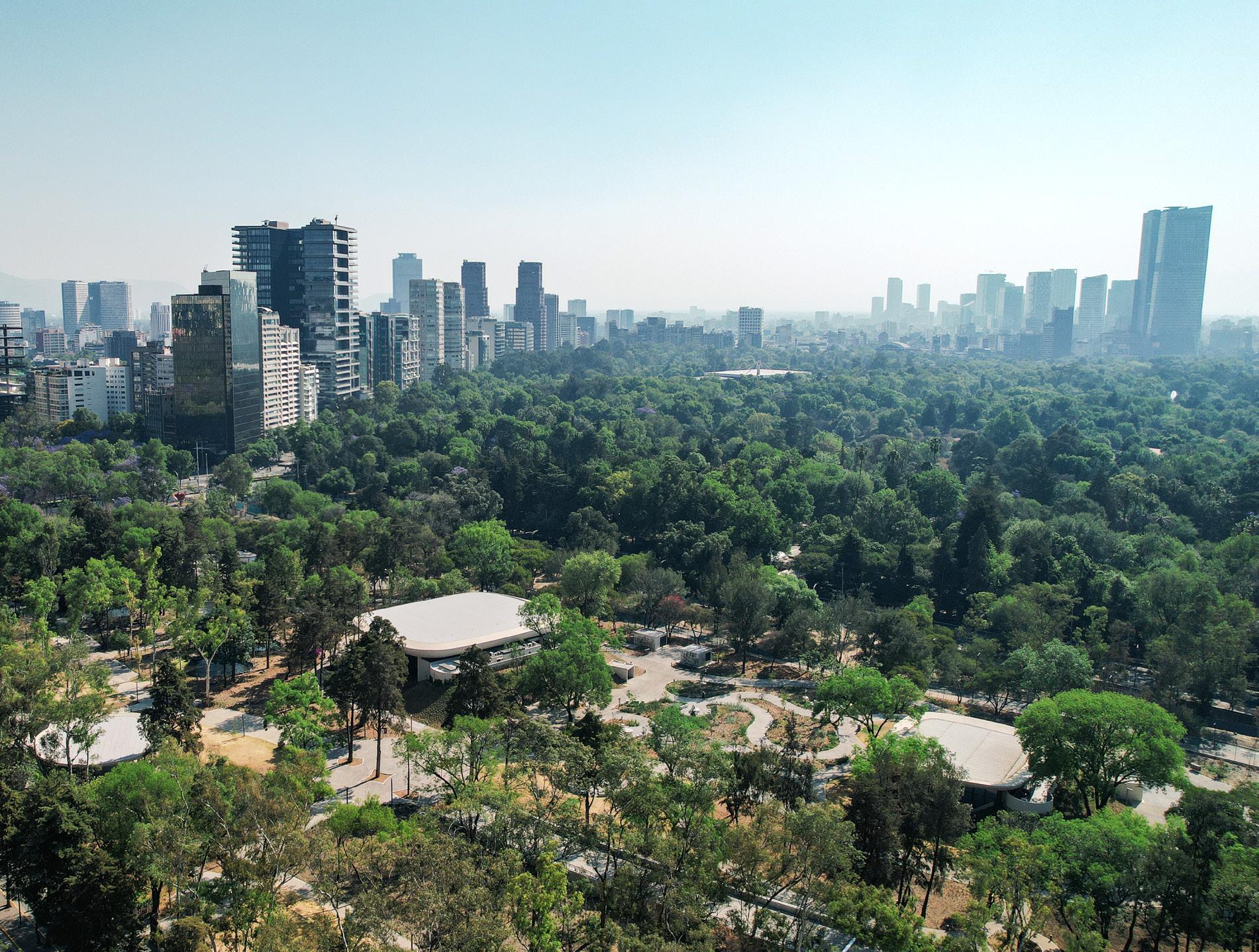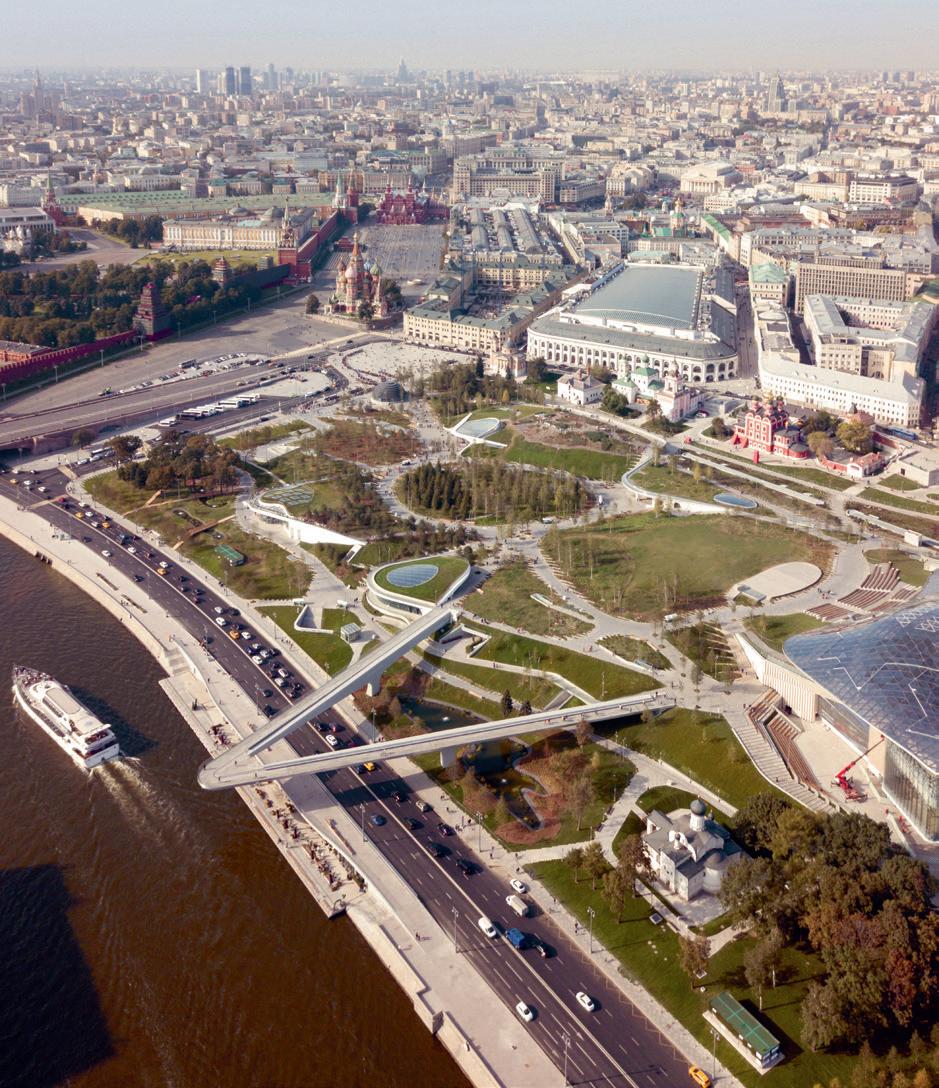 Zaryadye Park, Moscow, 2017. Aerial view with flyover bridge looking northwest toward the Kremlin, Red Square (fig. 6, page 238) Architecture.