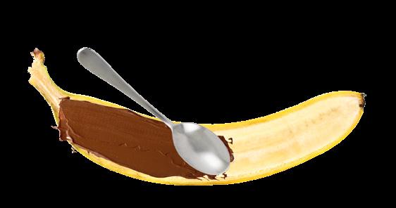 2 Spalma su ogni mezza banana della crema al cioccolato.