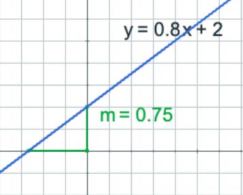 2. aplicamos ley de signos en caso de ser requerido, en este ejemplo tenemos dos signos de menos ( — ) al multiplicarlos resulta positivo y = 0.75x + 2 m = 0.75 b = 2