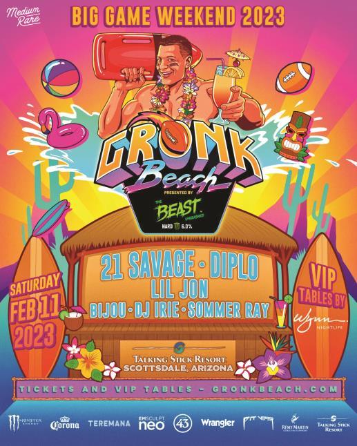 Talking Stick Resort, an enterprise of the Salt River PimaMaricopa Indian Community, is proud to announce two more events to round out its exclusive Big Game weekend celebration. Just added is The Kick-Off Party featuring Steve Aoki on Thursday, Feb. 9 and the Big Game Watch Party on Sunday, February 12 featuring appearances by Bo Jackson, DeAngelo Williams and Doug Flutie.