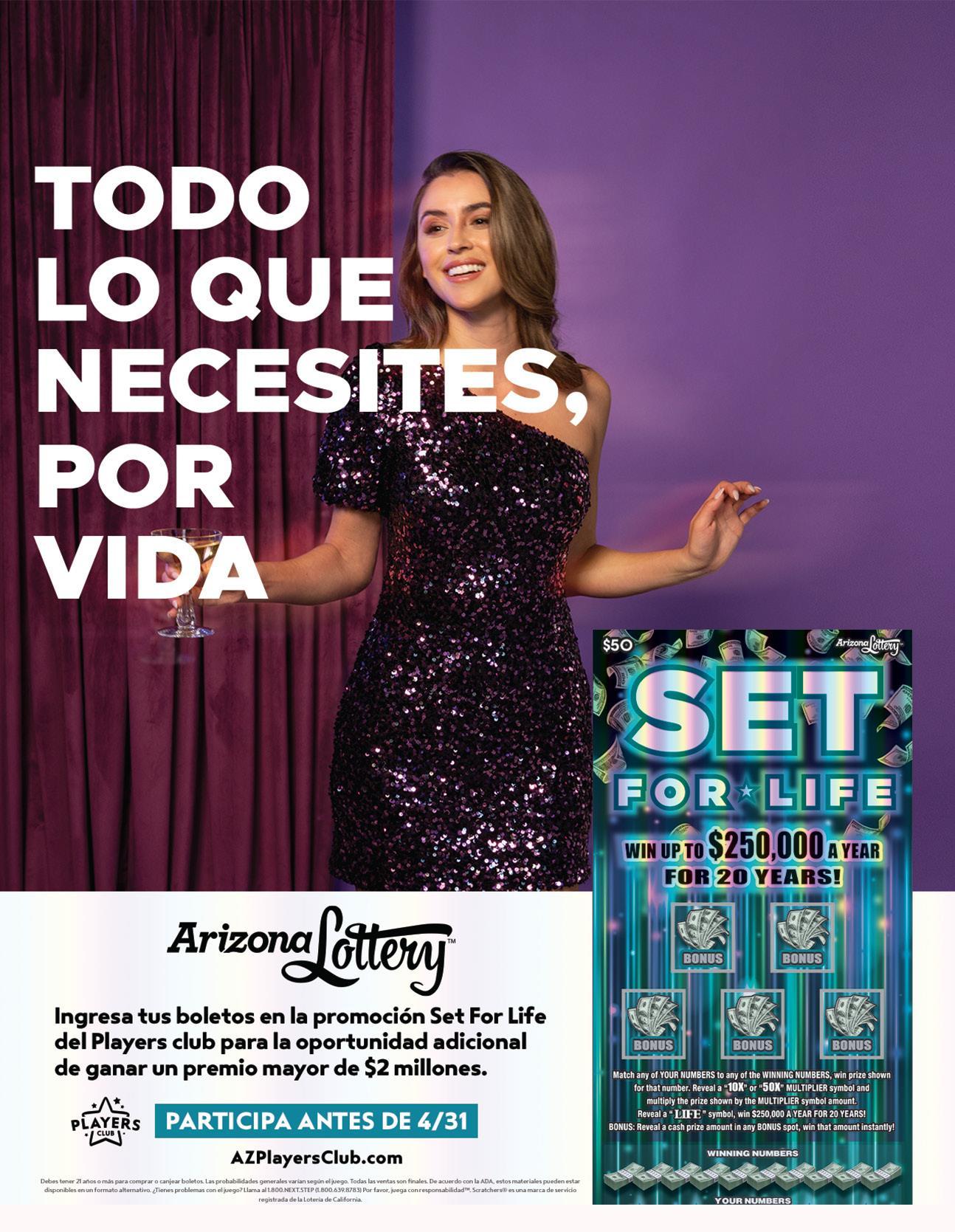 Los jugadores pueden comprar boletos Set For Life en tiendas minoristas seleccionadas de Arizona Lottery e ingresarlos en esta promoción a través de la aplicación del Players Club de Arizona Lottery o en AZPlayersClub.com. Para más información, visita ArizonaLottery.com