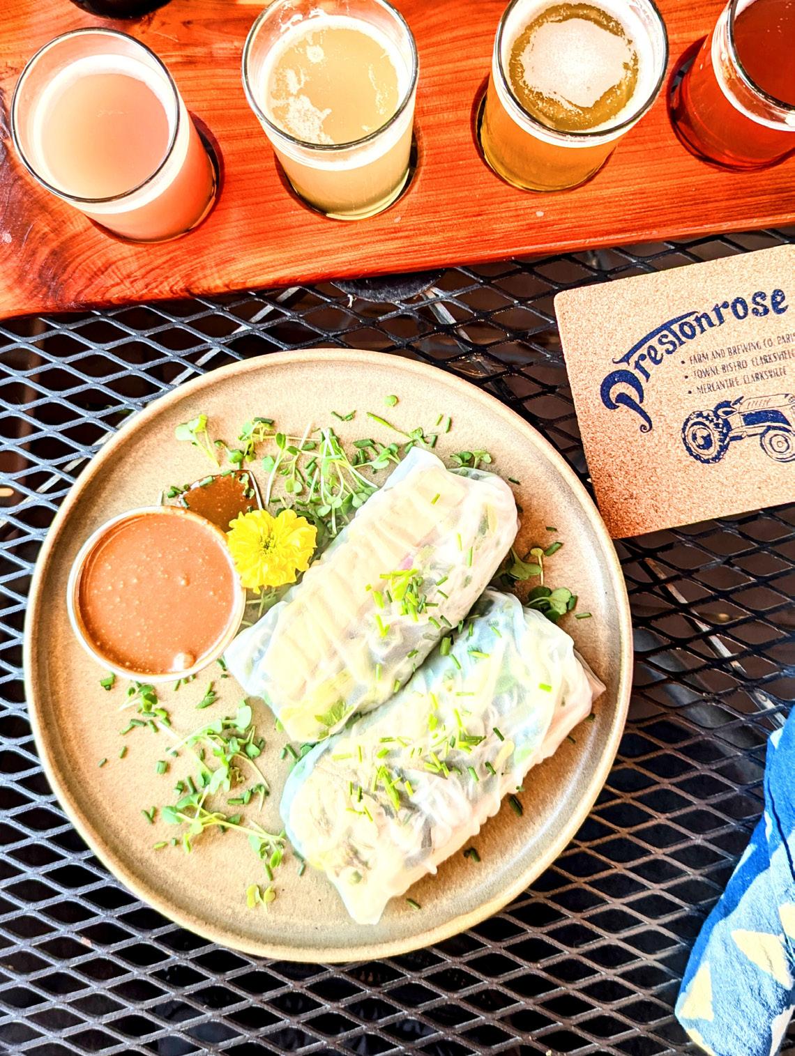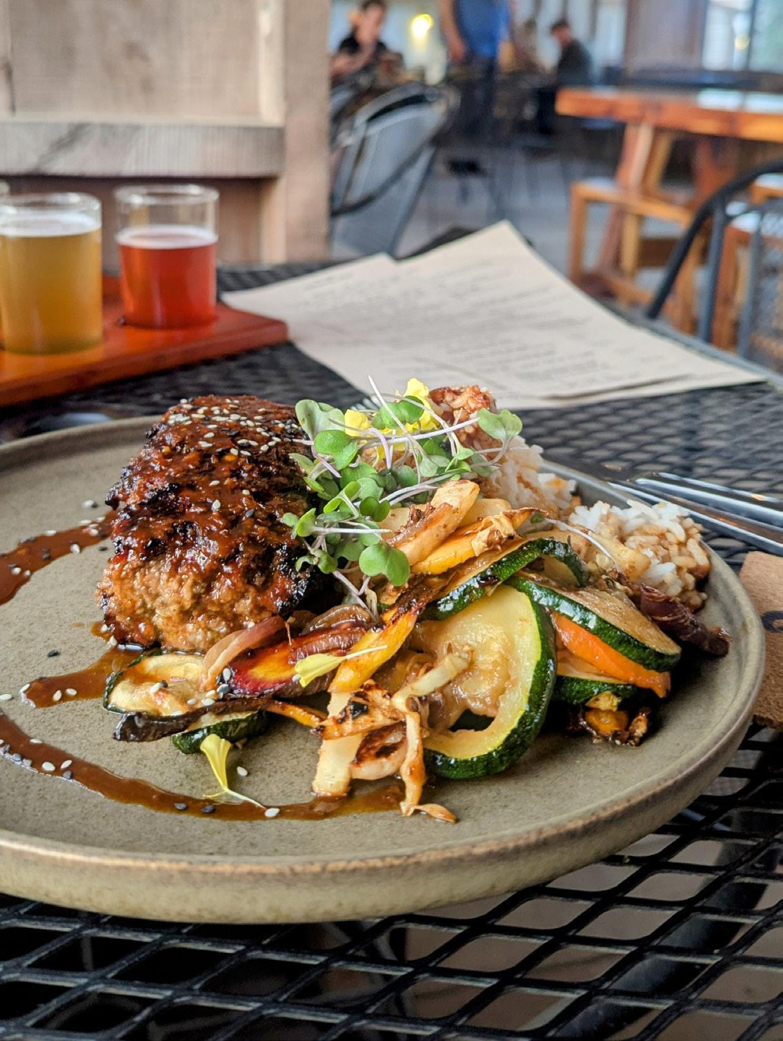 Emu meatloaf and beer flights at Prestonrose Farm and Brewery.