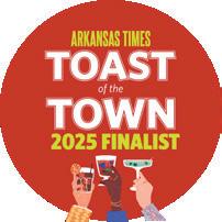 ARKANSAS TIMES (ISSN 0164-6273) is published each month by Arkansas Times Limited Partnership, 201 East Markham Street, Suite 150, Little Rock, Arkansas, 72201, phone (501) 3752985. Periodical postage paid at Little Rock, Arkansas, and additional mailing offices. POSTMASTER: Send address changes to ARKANSAS TIMES, 201 EAST MARKHAM STREET, SUITE 150, Little Rock, AR, 72201. Subscription prices are $60 for one year. For subscriber service call (501) 375-2985. Current single-copy price is $5, free in Pulaski County. Single issues are available by mail at $5.00 each, postage paid. Payment must accompany all orders. Reproduction or use in whole or in part of the contents without the written consent of the publishers is prohibited. Manuscripts and artwork will not be returned or acknowledged unless sufficient return postage and a self-addressed stamped envelope are included. All materials are handled with due care; however, the publisher assumes no responsibility for care and safe return of unsolicited materials. All letters sent to ARKANSAS TIMES will be treated as intended for publication and are subject to ARKANSAS TIMES’ unrestricted right to edit or to comment editorially.