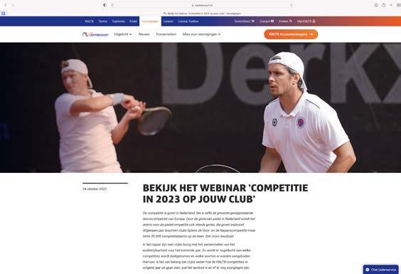 Zoals gezegd gaat het in dit nummer veel over Meet & Play. Ons platform Meet & Play komt tegemoet aan de behoefte van spelers om zelf te kiezen waar en wanneer ze willen spelen en dat direct via hun telefoon te regelen. Én op die manier kunnen meer mensen kennismaken met onze verenigingen. In deze editie van Centre Court Magazine komen meerdere verenigingen aan het woord die deze stip al nadrukkelijk op de horizon hebben gezet. Zo draait één artikel om Racketclub Westerbork en Tennis en Padelvereniging Tautenberg, die zich heel bewust voorbereiden op de toekomst, zoals met de digitalisering van het toegangssysteem tot hun park. Maar ook Tennis en Padelvereniging De Kreilen in Oudega is een interessant voorbeeld. Daar ontvangen ze, onder andere met Meet & Play, veel nieuwe mensen op hun park en spannen zij zich dagelijks in om deze spelers welkom te heten en te leren kennen. Bij TV de Harremaat in Voorthuizen zoeken ze bewust de balans tussen leden en boekers via Meet &