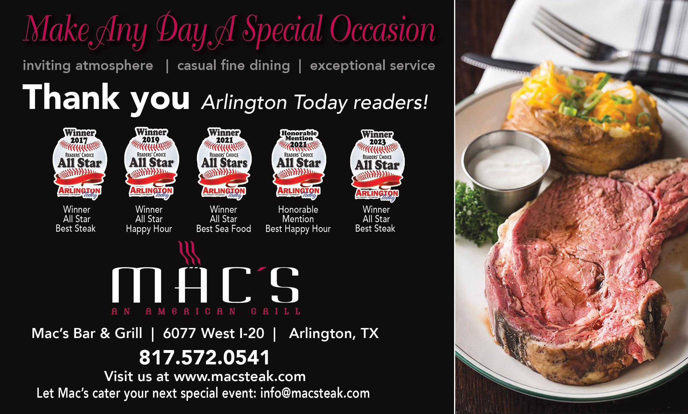 ARLINGTON TODAY is published monthly. Copyright 2023 Arlington Today, Inc. All rights reserved. No part of this publication may be reproduced or transmitted by any means without permission of the publisher. The inclusion of advertising is considered a service to readers and is not an endorsement of products. Basic subscriptions are $33.95 annually. To subscribe, e-mail subscriptions@arlingtontoday.com Phone us at (817) 303-3304