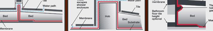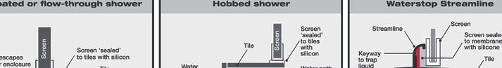 Most contractors are at a complete loss as to why, but detailed testing has shown how, by the action of expansion and contraction, water is “pumped” along glue cavities to escape the shower enclosure, no matter how well it is water-proofed. The best way to prevent the problem is to seal the screen directly to the membrane, and NOT to the tiles.