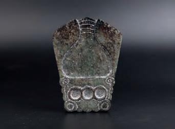 Jade carved bi disc decorated with bat motifs, attached with two carved chilong on the reverse.