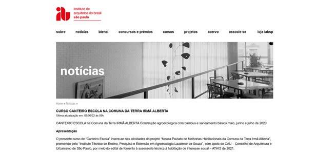 Canteiro Escola na Comuna da Terra Irmã Alberta. Disponível em: https://www.iabsp.org.br/?noticias=curso-canteiro-escola-na-comuna-da-terrairma-alberta.Acessoem:15out.2024.