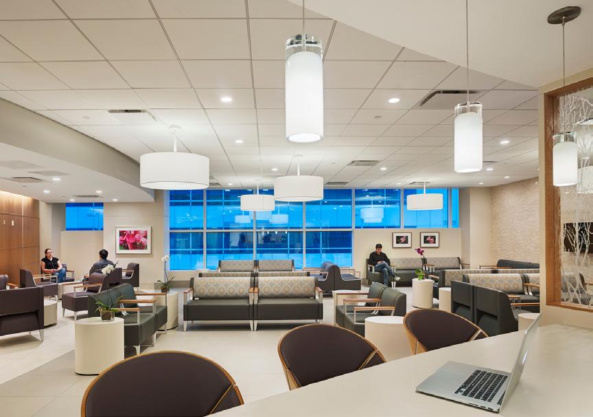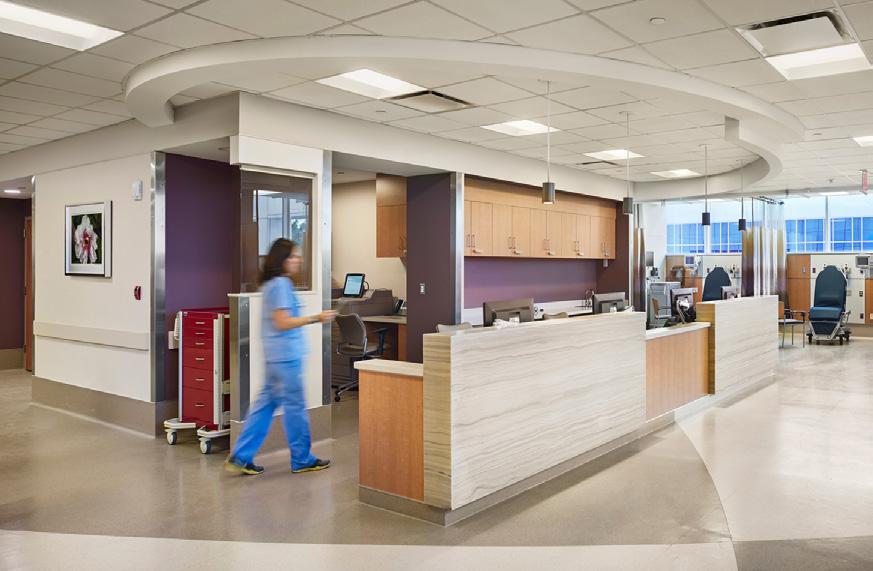 comfort and privacy while waiting. This approach was carried throughout the clinical areas as well, where patient care bays and nurses’ stations utilize sophisticated design and materials, creating a less clinical consumer experience that is also very functional for staff. In addition to providing visioning, branding and design services, the team also developed plan revisions for operational efficiency, coordinated equipment, and developed signage concepts, resulting in a comprehensive environment for the health system.