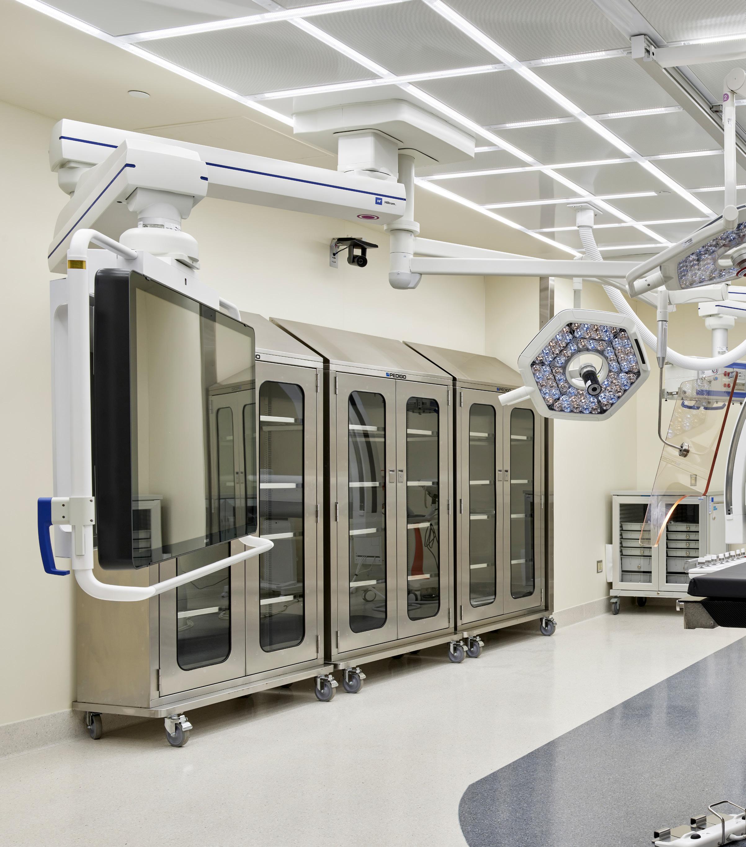 To meet increased patient demand and improve the efficiency of their existing seven OR surgical floor, Cooper embarked on a surgical platform expansion and renovation to include five new operating rooms. Building on their renowned orthopedic practice, the expansion included an additional orthopedic OR, a reconfiguration of another orthopedic OR and the addition of a trauma OR and two robotic ORs to support specialized oncologic procedures.