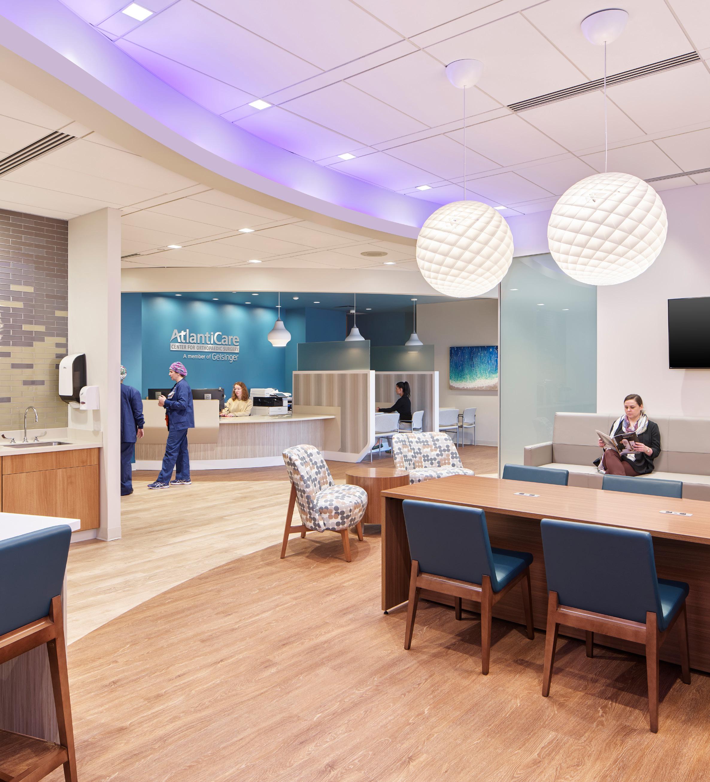 In partnership with Rothman Orthopedics, AtlantiCare’s new ambulatory surgical center in Egg Harbor Township is a holistic experience designed with consumer focus and operational efficiency as main priorities. The facility includes six state-of-the-art operating rooms, accompanied by twelve pre-op bays, twelve post-op bays, and three private overnight rooms, in addition to ancillary clinical support.