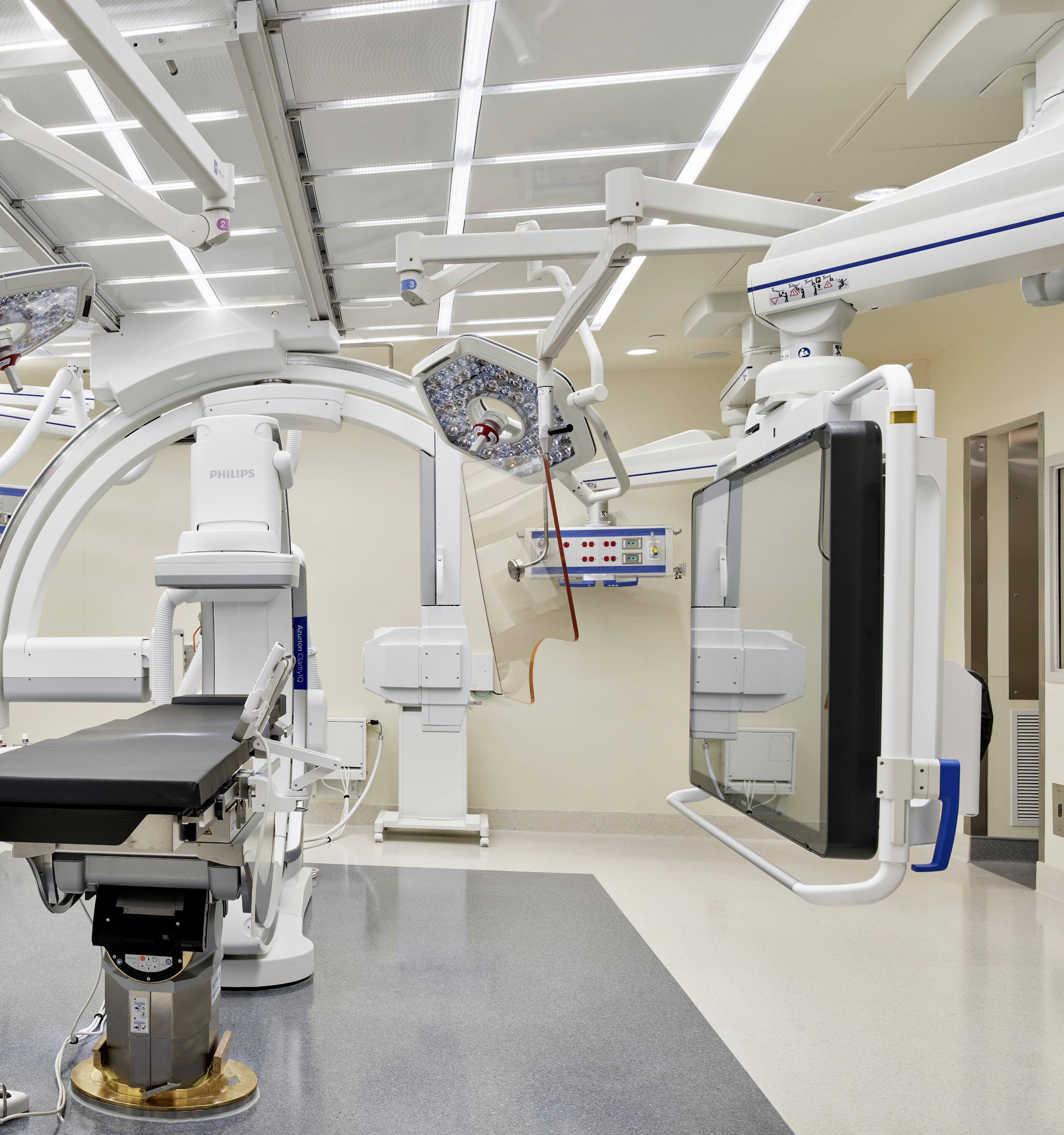 The new suite includes a hybrid bi-plane catheterization lab and associated support space. The lab was located in shell space