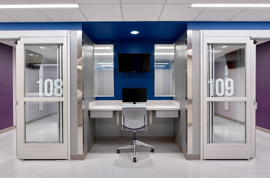 This drove a solution to create a dedicated and secure EDAP unit that includes five secure assessment rooms, private TVs, a patient lounge, consult room, and team center with dedicated support and patient support space. The new unit addresses patients’ short-term acute illnesses and provides assessment capabilities for up to a 24-hour stay, allowing staff to determine whether the patient requires inpatient admission or is ready for discharge.