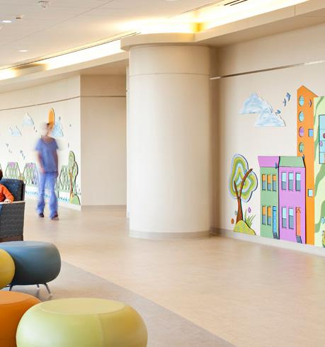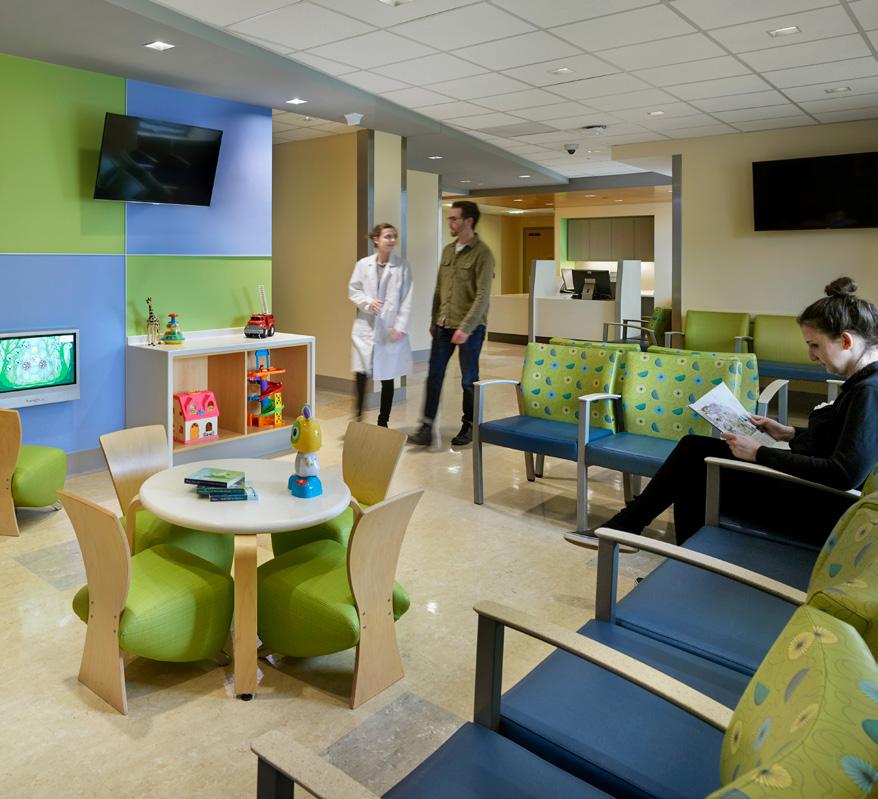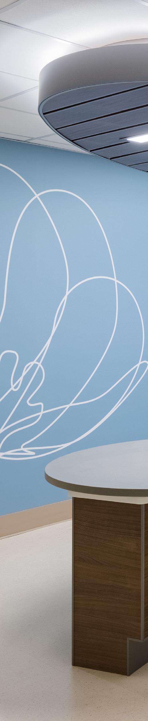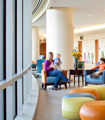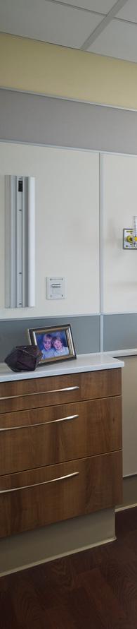 refrigerator. Other features include family waiting, a consultation suite and exam/ interview/prep space. A colorful, whimsical space which appeals to all ages welcomes patients and families.