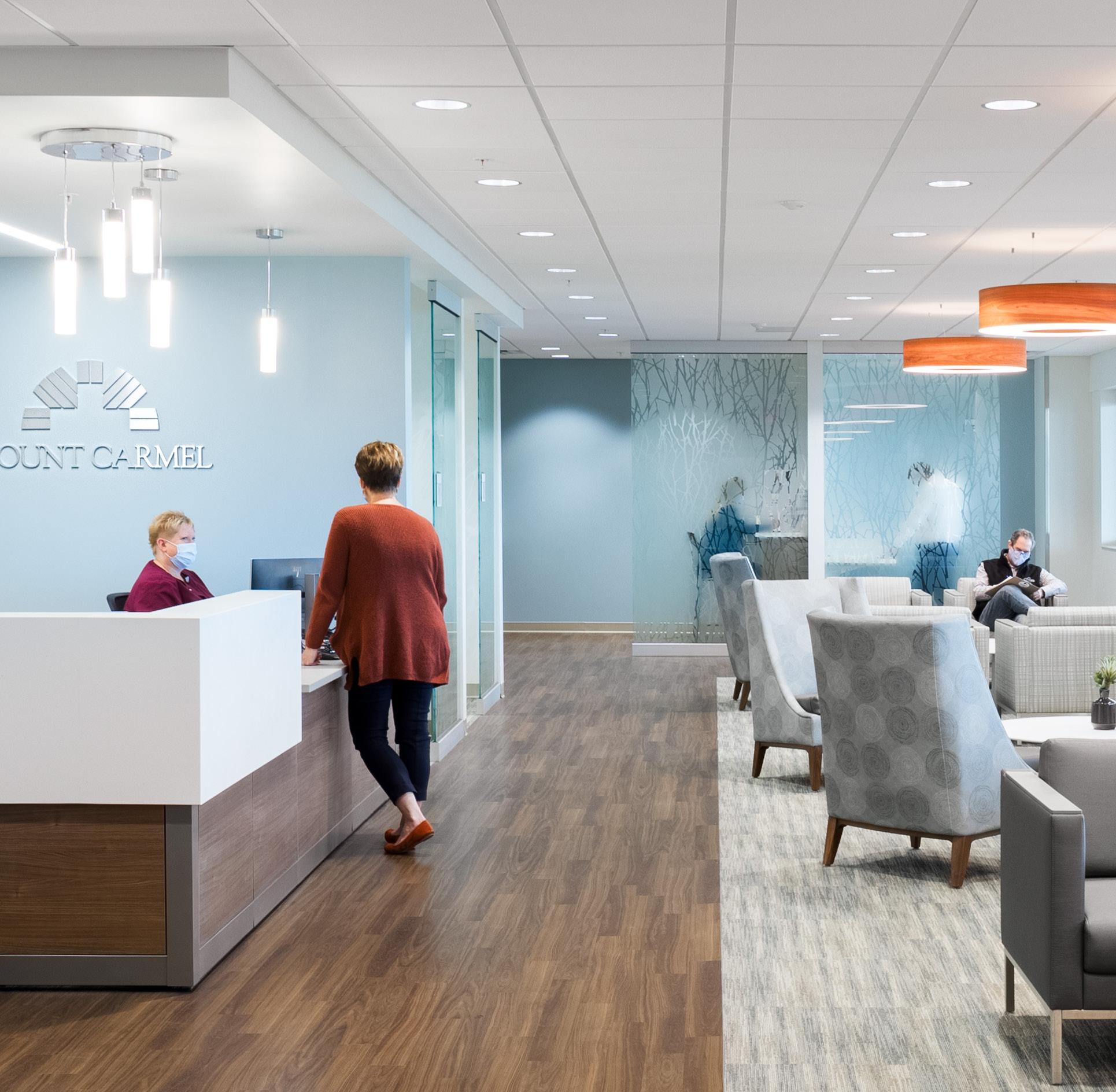 Mount Carmel engaged Array to provide interior design services for a greenfield replacement facility designed to expand access to care for the community, improve patient experience, and increase physician/ staff productivity. This campus is a topperforming teaching medical center dedicated to providing compassionate, faith-based, quality care to patients, families, and residents of Grove City and the surrounding areas.