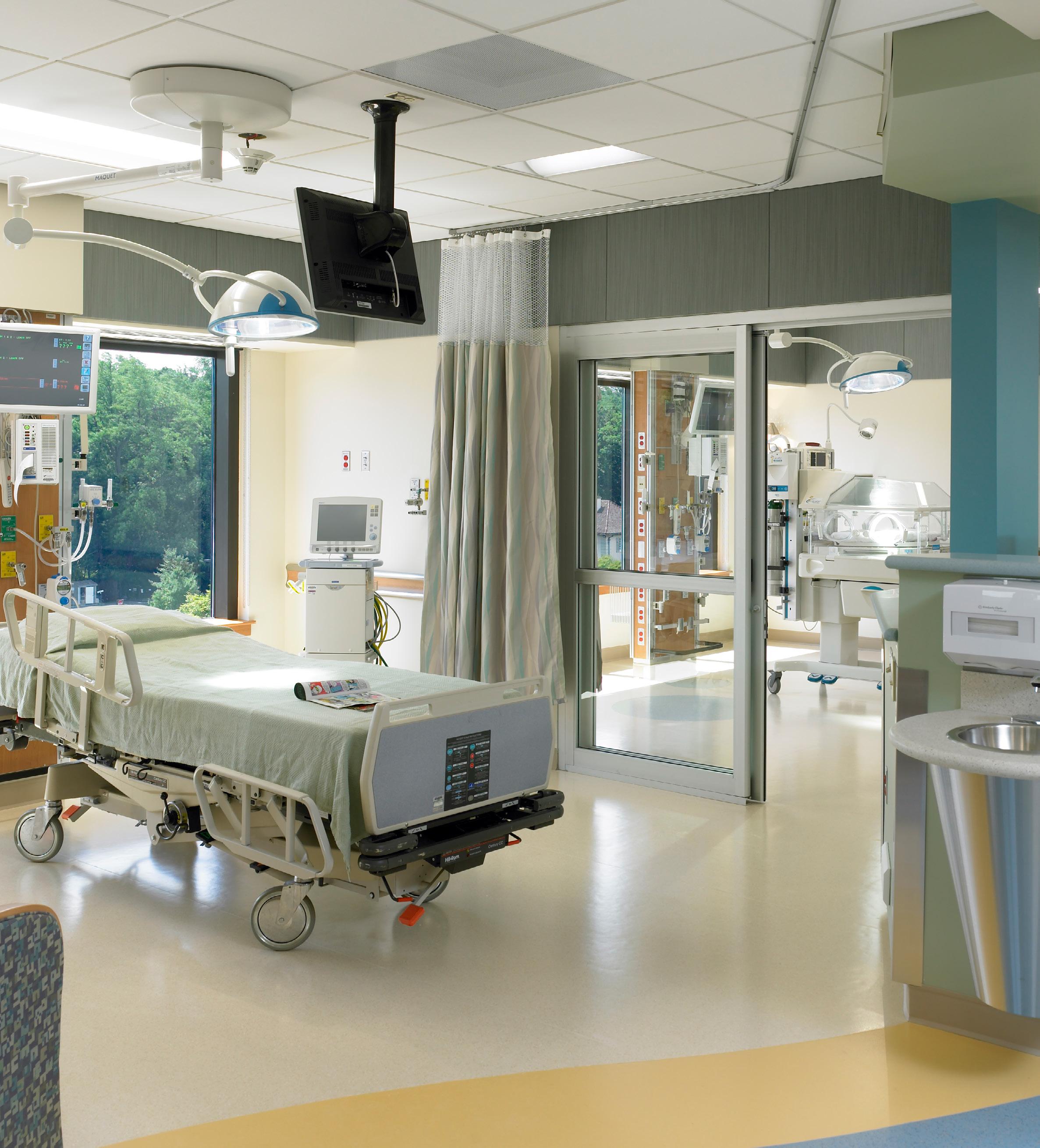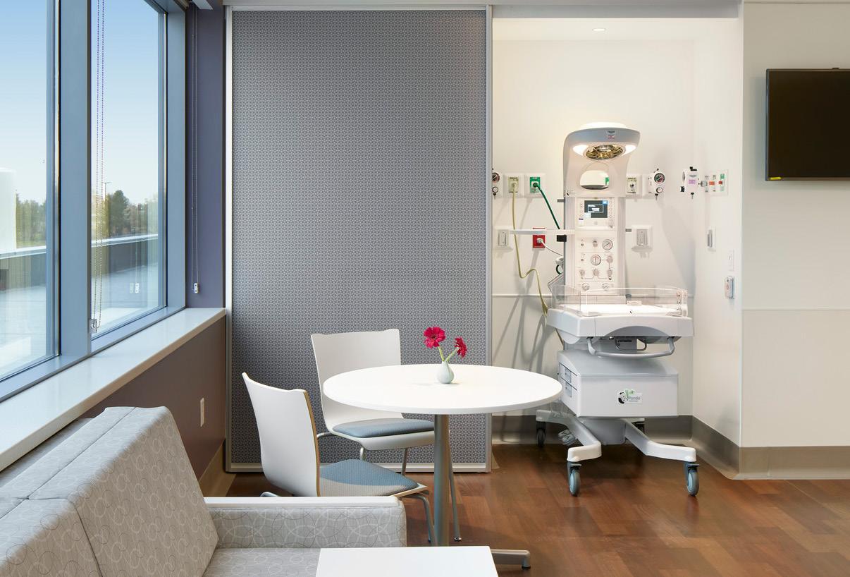 labor, delivery, and recovery room include areas that conceal equipment until they are needed during delivery. Spacious light-filled mother-child health (MCH) patient bathrooms are equipped with a jetted tub to soothe and assist mothers-to-be during labor and after the delivery.