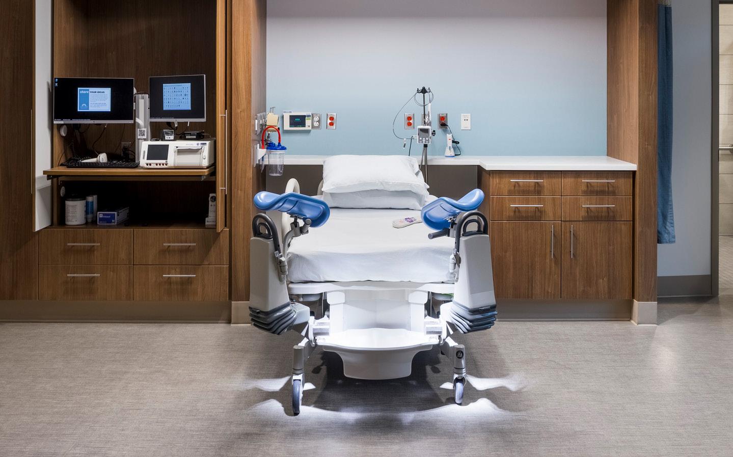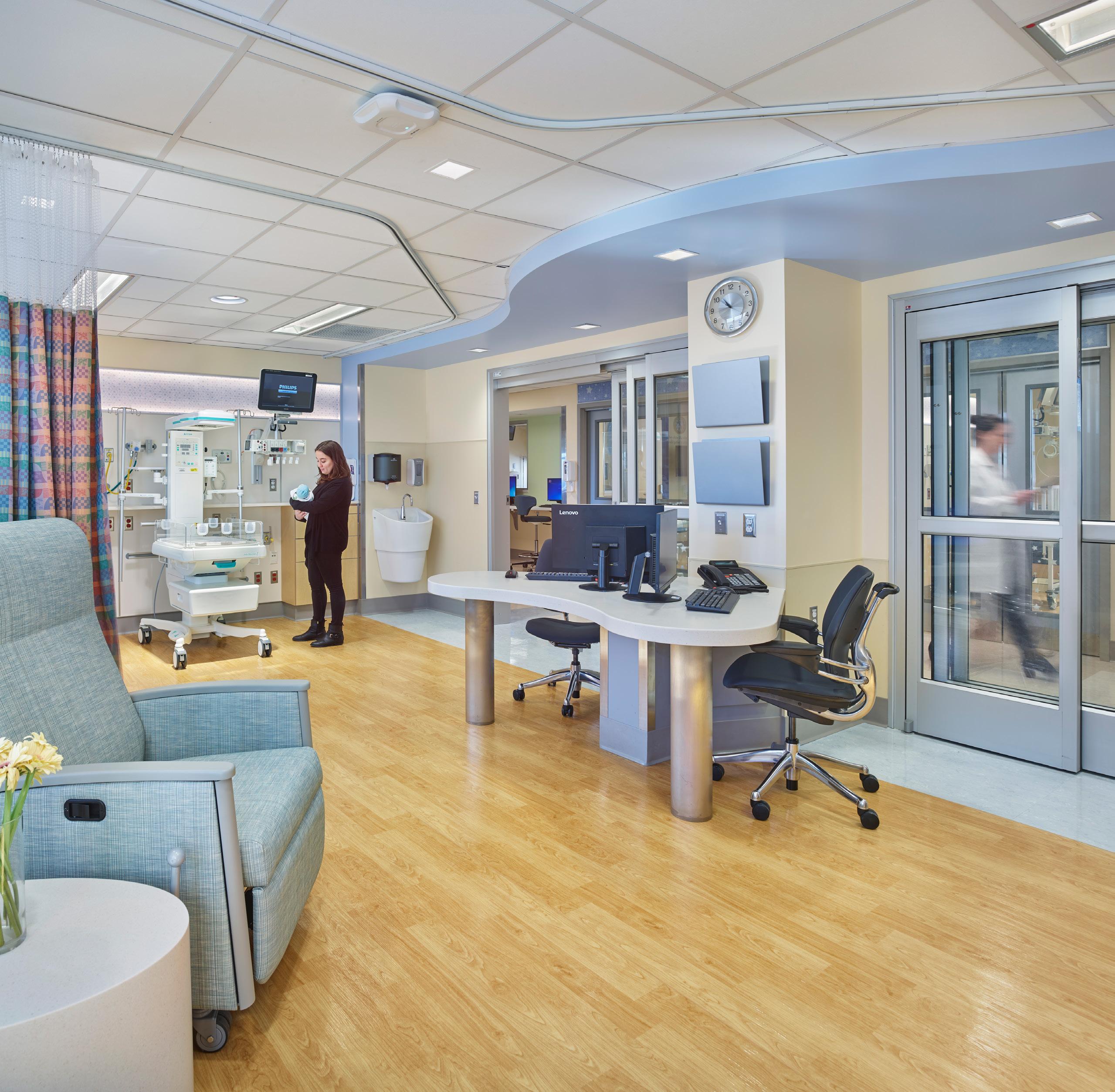 The completed unit provides expectant mothers with all the amenities and technology expectant mothers need to have a safe and personal birth experience. All rooms are private and are equipped with smart room technology, a refrigerator and comfortable sleeping accommodations for a partner. The unit also includes two dedicated C-Section rooms.
