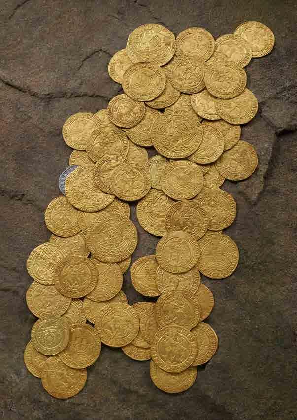 Mr and Mrs. W.’s home is a modern one with no evidence of an earlier Tudor building. Whilst the location the hoard was found is a mere two miles from Hurst Castle (built by Henry VIII from 1541 to 1544 to guard the Solent), one would expect a far higher number of coins of the later Crown gold period and a larger number of die duplicates to associate the hoard with the construction of this fortification. It seems more likely that the coins were deposited in the context of the troubled years of the late 1530s at the height of the first phase of the Reformation. This was a period that the historian Brendan Scott has described as ‘the greatest dislocation of people, property and daily life since the Norman Conquest.’ The village and manor of Milford formed part of the estates of Christchurch Priory. On 28 November 1539 the last prior of Christchurch, John Draper, surrendered the priory to Cromwell’s commissioners and so began the process of inventorying and removing the many treasures of the church. Though we will never know by whom or for what reason the New Forest Hoard was buried it is tantalizing to speculate that the coins were concealed in order to keep them safe from the reaches of the rapacious king’s men.