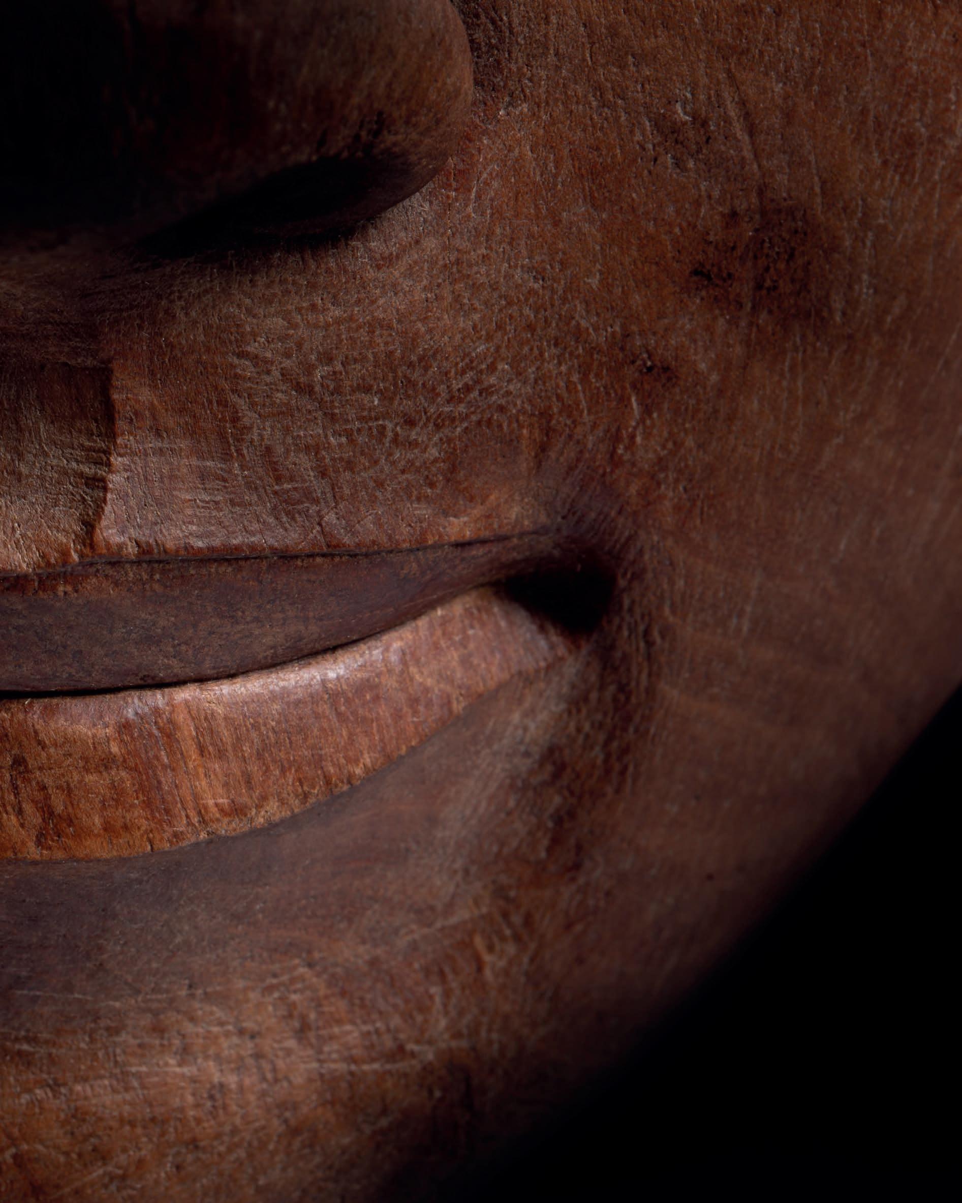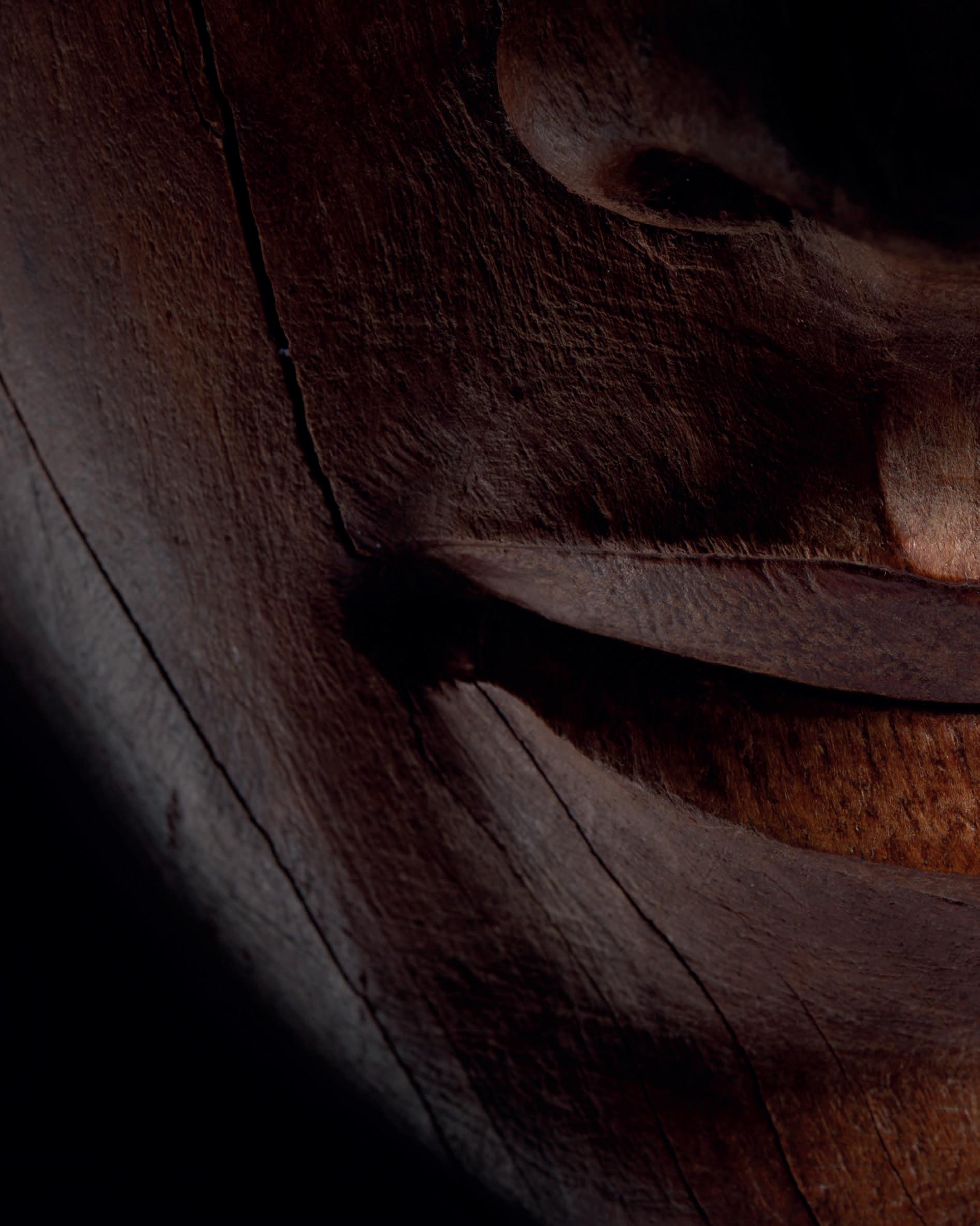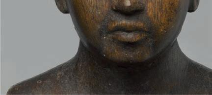As the sculptor reached closer to the final surface, finer tools were required. Claw chisels with more teeth, flat chisels, files and rasps helped in further modelling the details of the figure, before the surface was polished. Tell-tale marks of the flat chisel are visible here, for example, in the hairline and by the right temple.